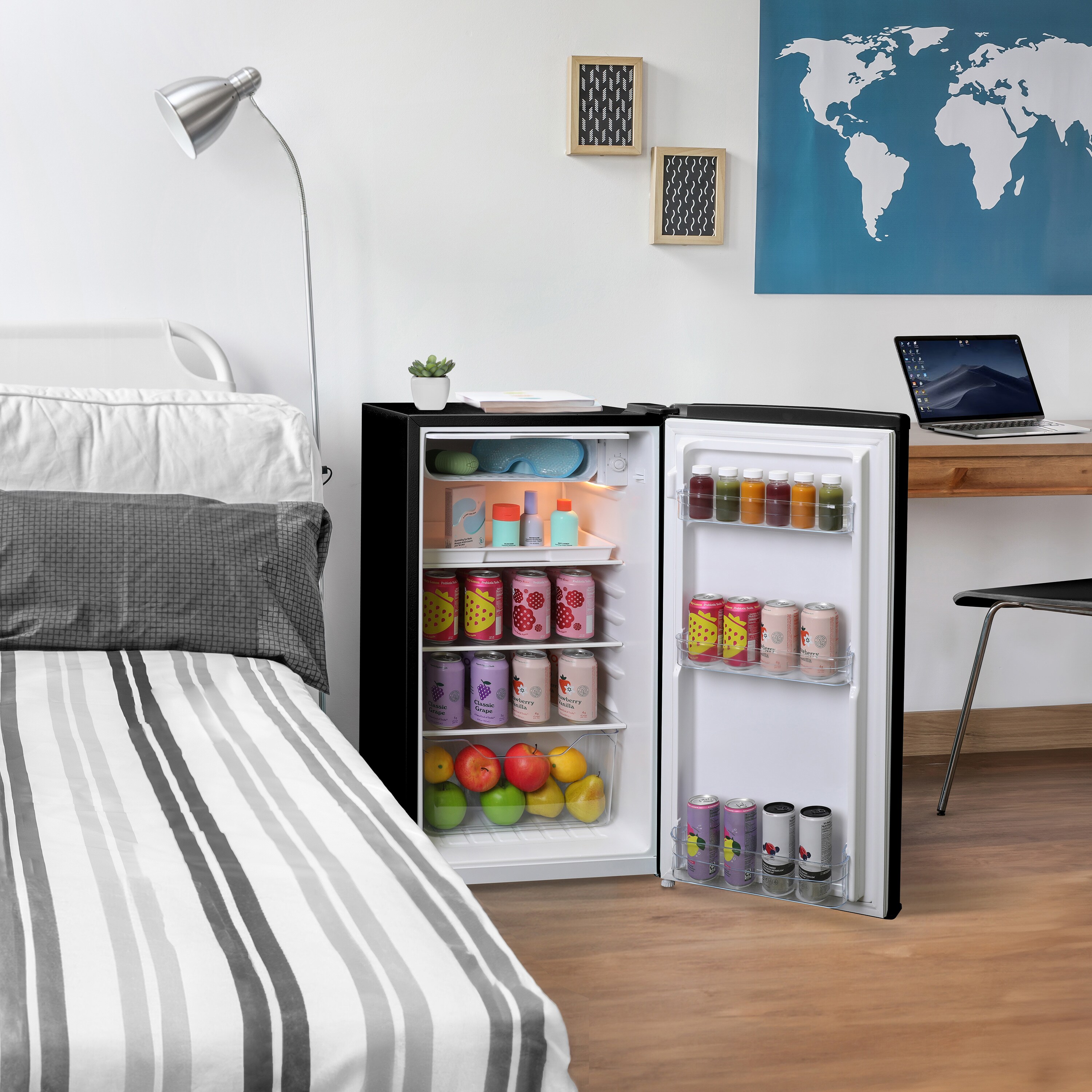 Spacious cubic foot capacity stores all your favorite foods, beverages, wine, and more
