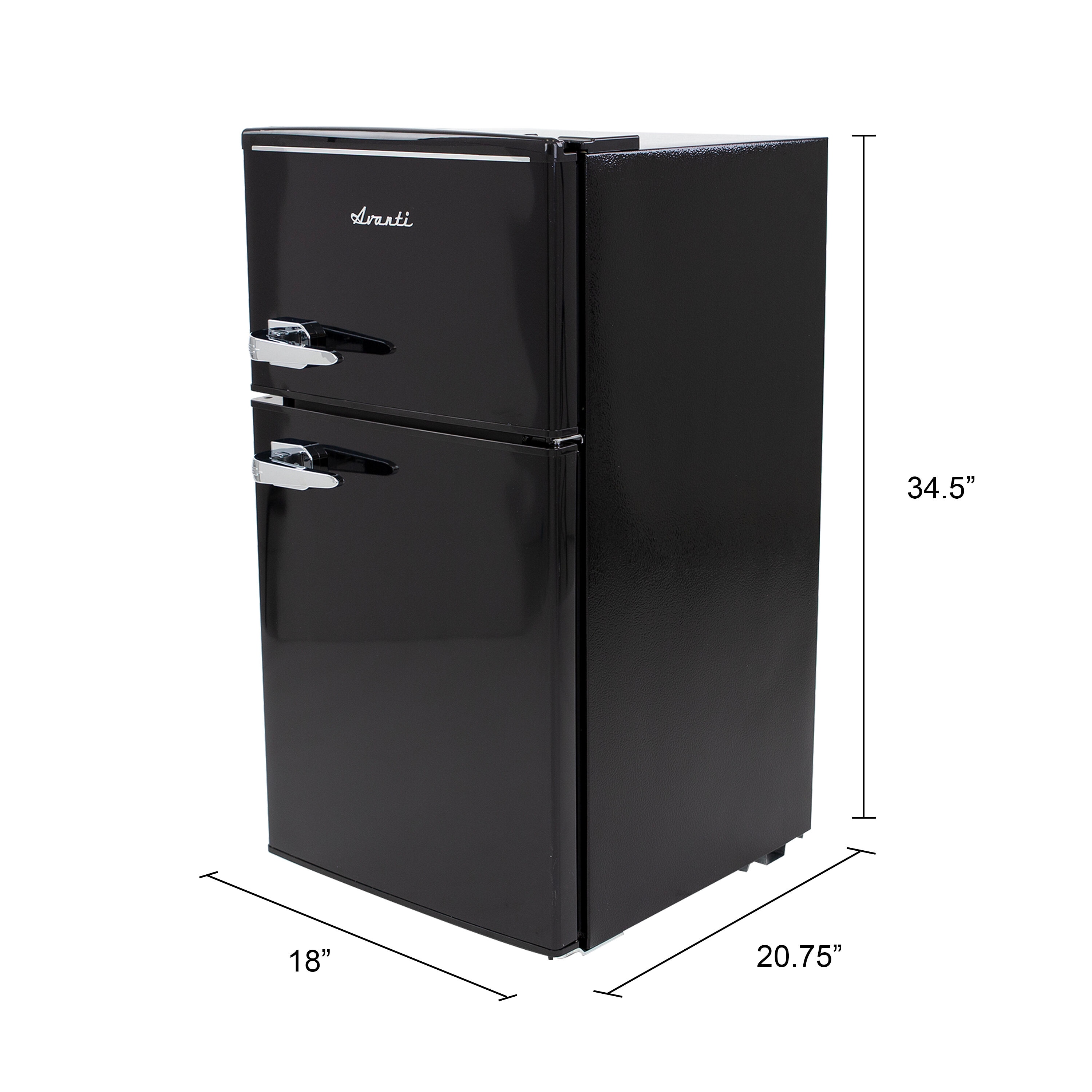 This retro-inspired compact refrigerator combines vintage charm with modern functionality, delivering a cool, colorful, and sophisticated aesthetic that enhances any setting. With a capacity of 3.0 cubic feet, this double-door freezer/refrigerator is the perfect space-saving solution for your home, dorm room, office, or recreational area. Its thoughtful design ensures that your favorite foods and beverages are always within reach, making it an ideal addition to small spaces where style and practicality matter most. The double-door design offers convenient access to all your essentials. The top freezer section provides ample space for storing frozen foods in bulk, helping you save money by reducing trips to the store. Meanwhile, the refrigerator section is designed to keep salads, fruits, snacks, and beverages fresh and easily accessible throughout the day. The manual defrost system allows you to maintain optimal cooling performance with minimal effort, giving you full control over the unit’s temperature settings. Storage is made simple with built-in door shelves and a beverage can dispenser. The door design accommodates a variety of items, including two-liter bottles, assorted condiments, and up to six 12-ounce cans, ensuring that your fridge stays organized and functional. Inside, two adjustable and removable glass shelves provide versatility in food storage, allowing you to customize the layout to suit your needs. These glass shelves are easy to clean and provide a clear view of your food items for added convenience. The fridge is equipped with mechanical temperature controls, allowing you to adjust the cooling settings quickly and easily with the turn of a dial. This feature ensures that your food and beverages are stored at the perfect temperature for maximum freshness. The retro-inspired exterior design adds a chic and timeless touch, making this compact fridge not only a practical appliance but also a stylish focal point in any room. Backed by Avanti’s 1-year manufacturer-limited warranty, this refrigerator offers reliability and peace of mind. Whether you’re looking to enhance your kitchen, upgrade your dorm, or add convenience to your office space, this compact fridge delivers on all fronts. Its combination of retro style, modern features, and compact efficiency makes it a standout choice for those who value both form and function.