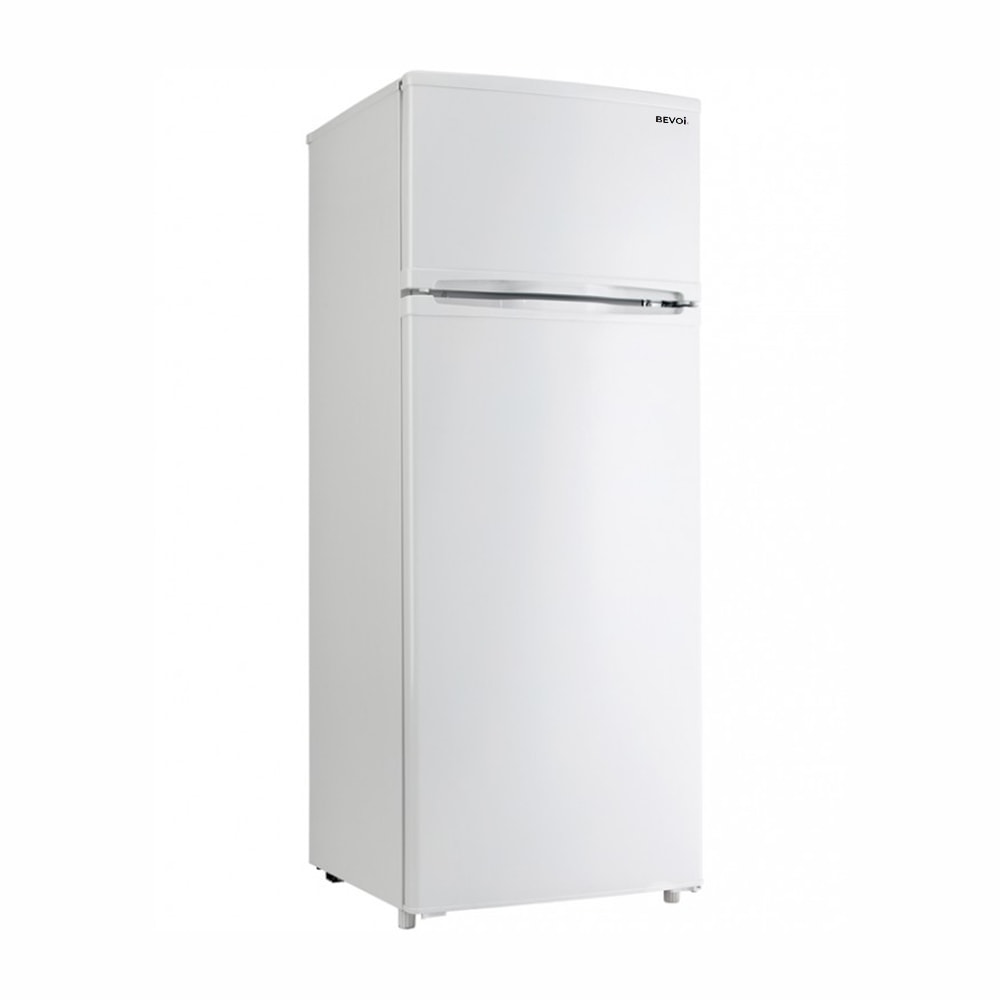 This top freezer apartment-size refrigerator by Bevoi is a great fit in the kitchen. The refrigerator features 7.3 cu. Ft. Total capacity, large crisper drawer, gallon bins, glass shelving.