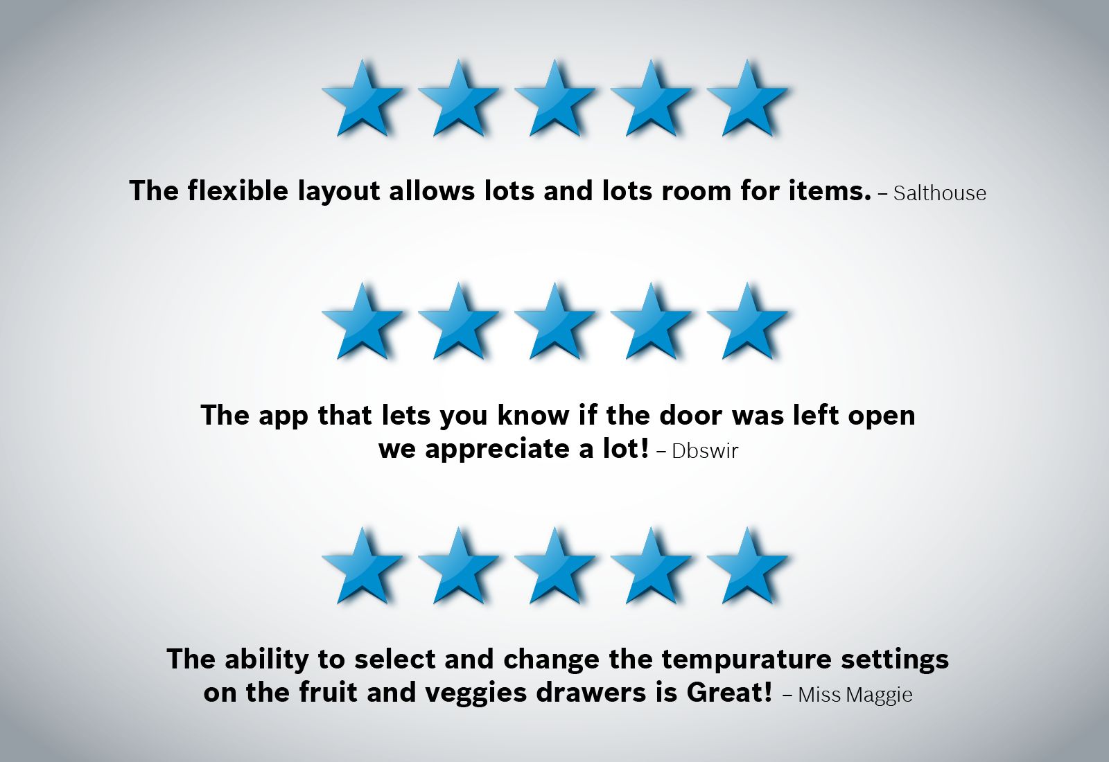 Introducing the revolutionary, Bosch counter-depth refrigerators, with a streamlined interior and advanced freshness system designed to keep the ingredients you love fresher longer. Enjoy less food waste, and more thoughtful design. Our revolutionary FarmFresh System combines four innovative technologies designed to take food preservation to the next level, while minimizing food waste. Working in harmony, the (1) VitaFreshPro, (2) FreshProtect Ethylene Filter, (3) MultiAirFlow, and (4) AirFresh Filter provide the optimal environment for your food storage needs. An industry first, VitaFreshPro automatically balances BOTH temperature and humidity. From produce to meats to cheeses, pre-programmed settings calibrate the optimal environment, removing the guesswork from food storage. FreshProtect absorbs naturally occurring ethylene to slow ripening, so produce stays fresher, longer. MultiAirFlow and AirFreshFilter work together to keep the temperature in your entire fridge consistent while reducing odors. It’s refrigeration, reinvented.