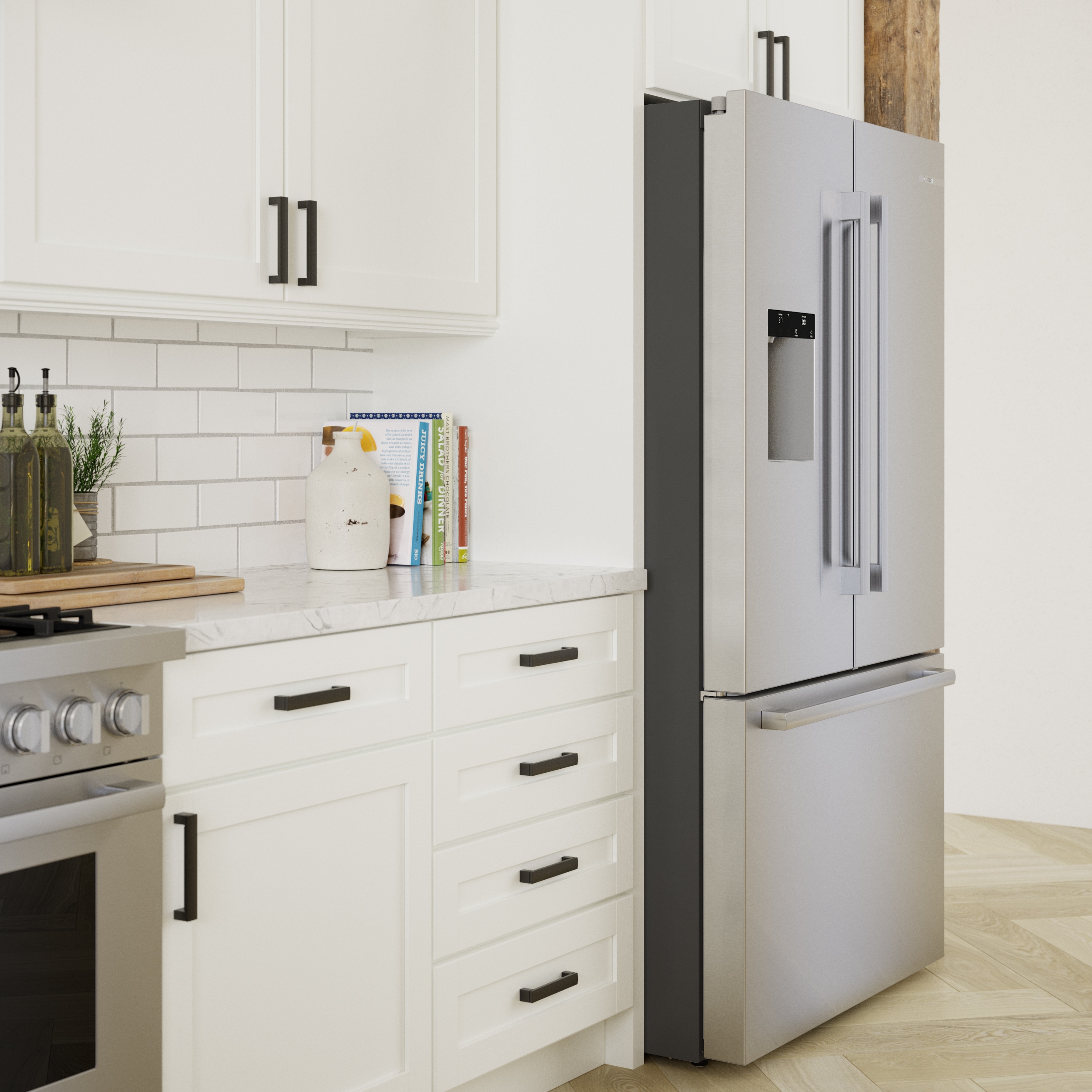 Bosch Standard-Depth 500 Series 26-cu ft 3 -Door Smart Compatible French Door Refrigerator with Ice Maker with Water and Ice Dispenser ( Stainless Steel ) ENERGY STAR Certified