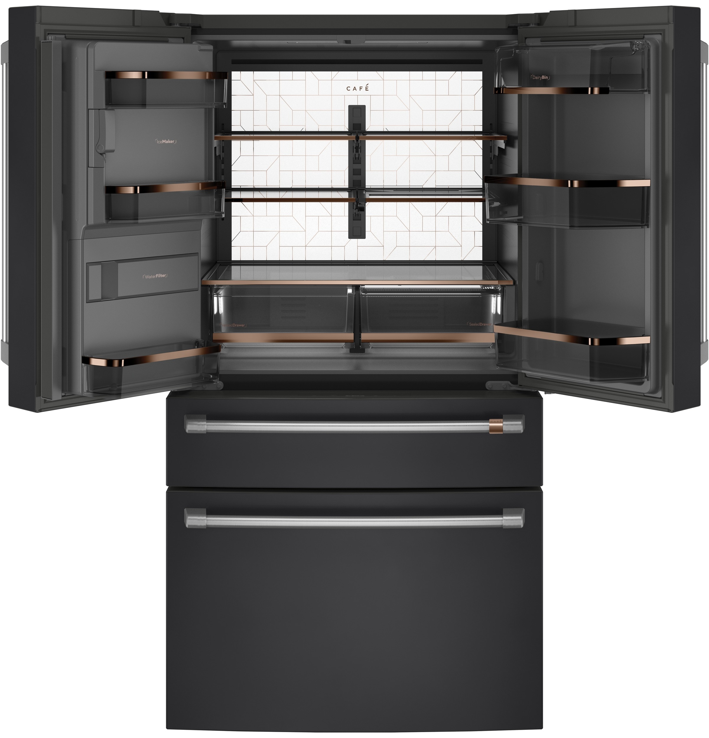 Cafe Counter-Depth 22.3-cu ft 4 -Door Smart Compatible French Door Refrigerator with Ice Maker with Water and Ice Dispenser ( Matte Black ) ENERGY STAR Certified