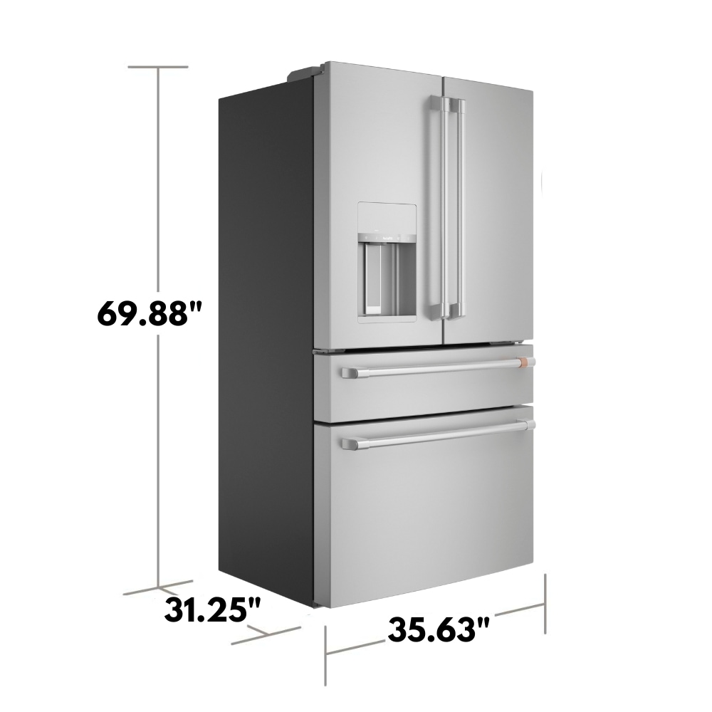 Cafe Counter-Depth 22.3-cu ft 4 -Door Smart Compatible French Door Refrigerator with Ice Maker with Water and Ice Dispenser ( Stainless Steel ) ENERGY STAR Certified