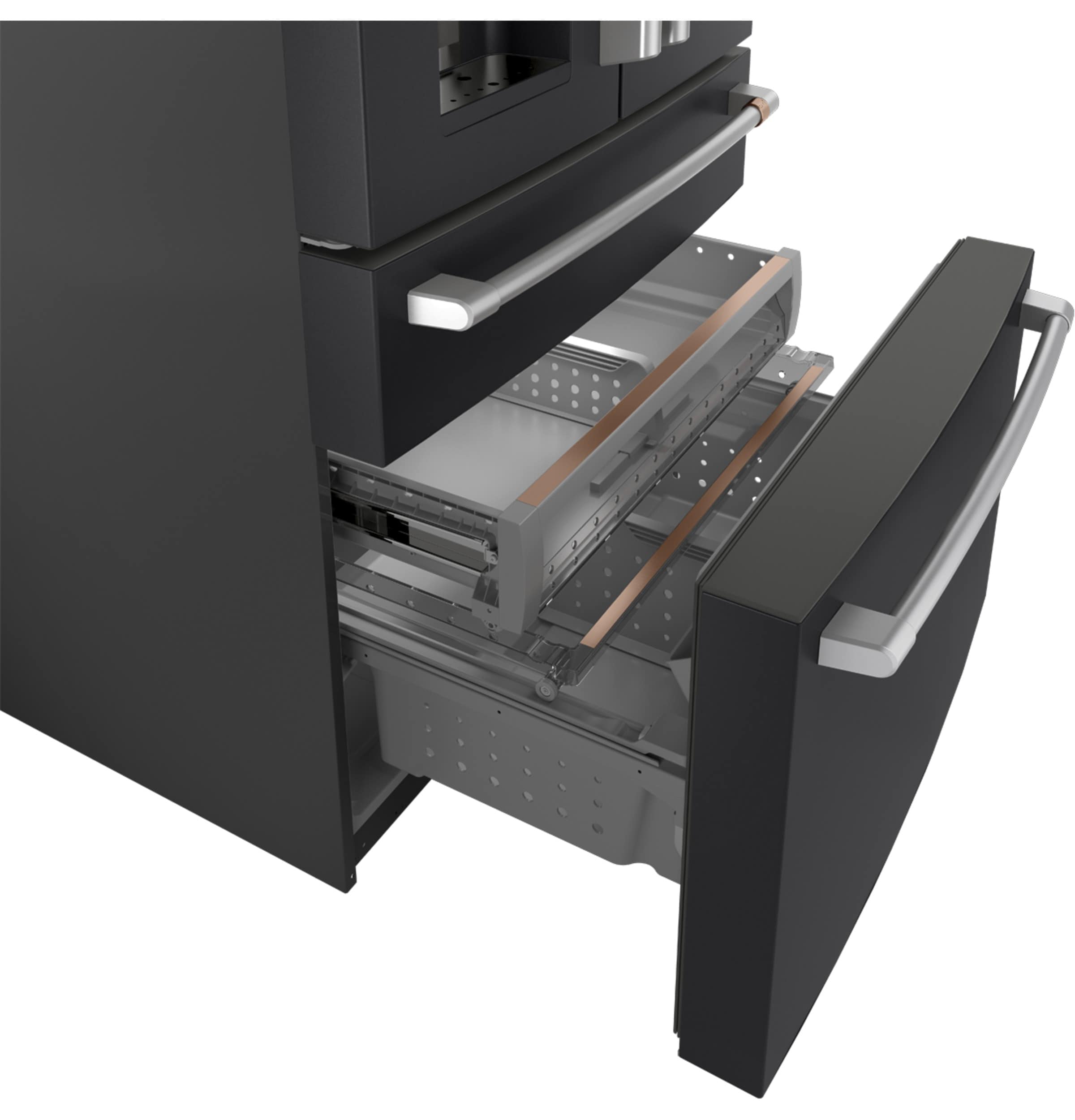Cafe Standard-Depth 27.8-cu ft 4 -Door Smart Compatible French Door Refrigerator with Ice Maker with Water and Ice Dispenser ( Matte Black ) ENERGY STAR Certified