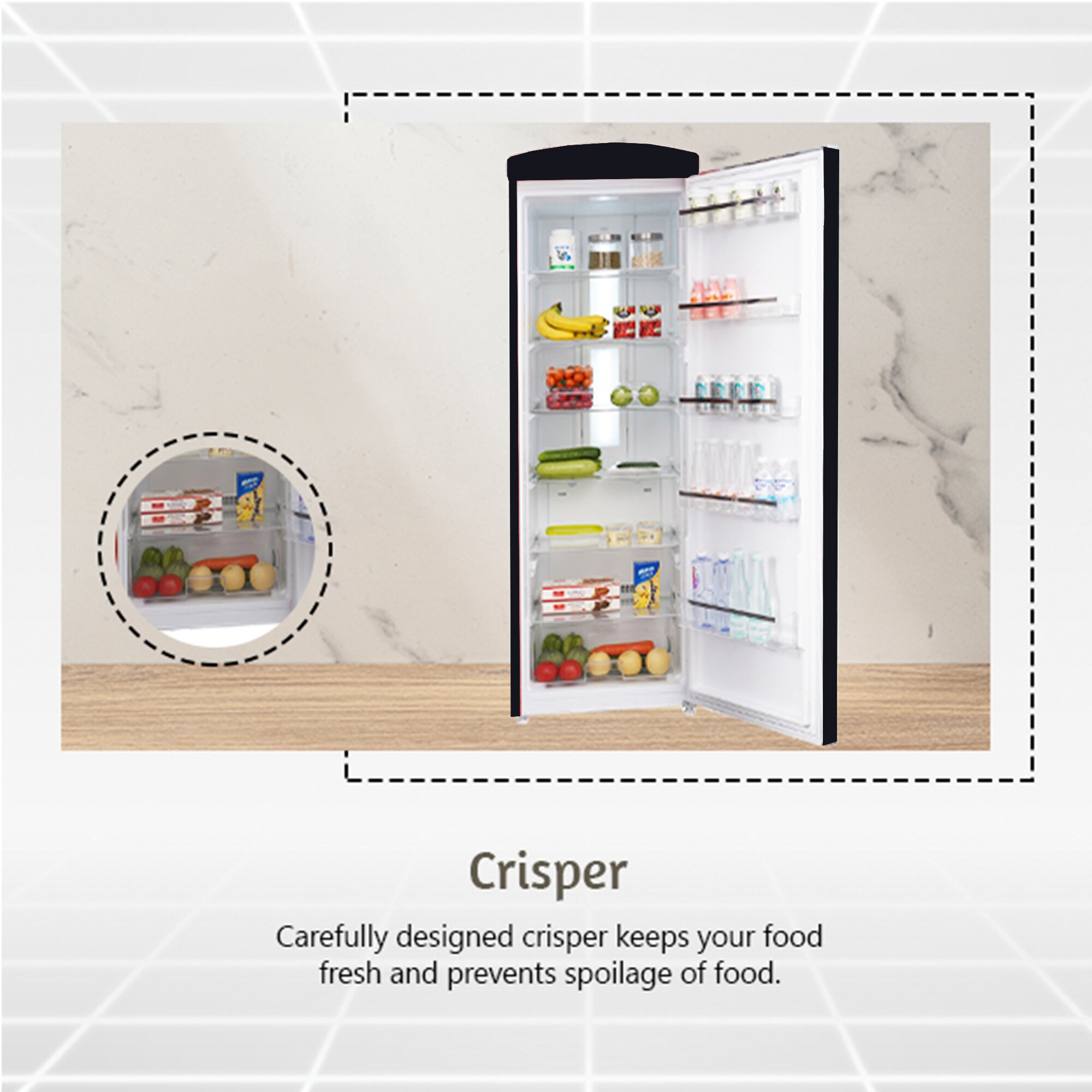 CRISPER – Carefully designed to extend the freshness of your stored produce.