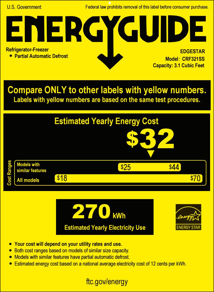 EdgeStar 3.1-cu ft Mini Fridge with Freezer ( Stainless Steel ) Garage Ready ENERGY STAR