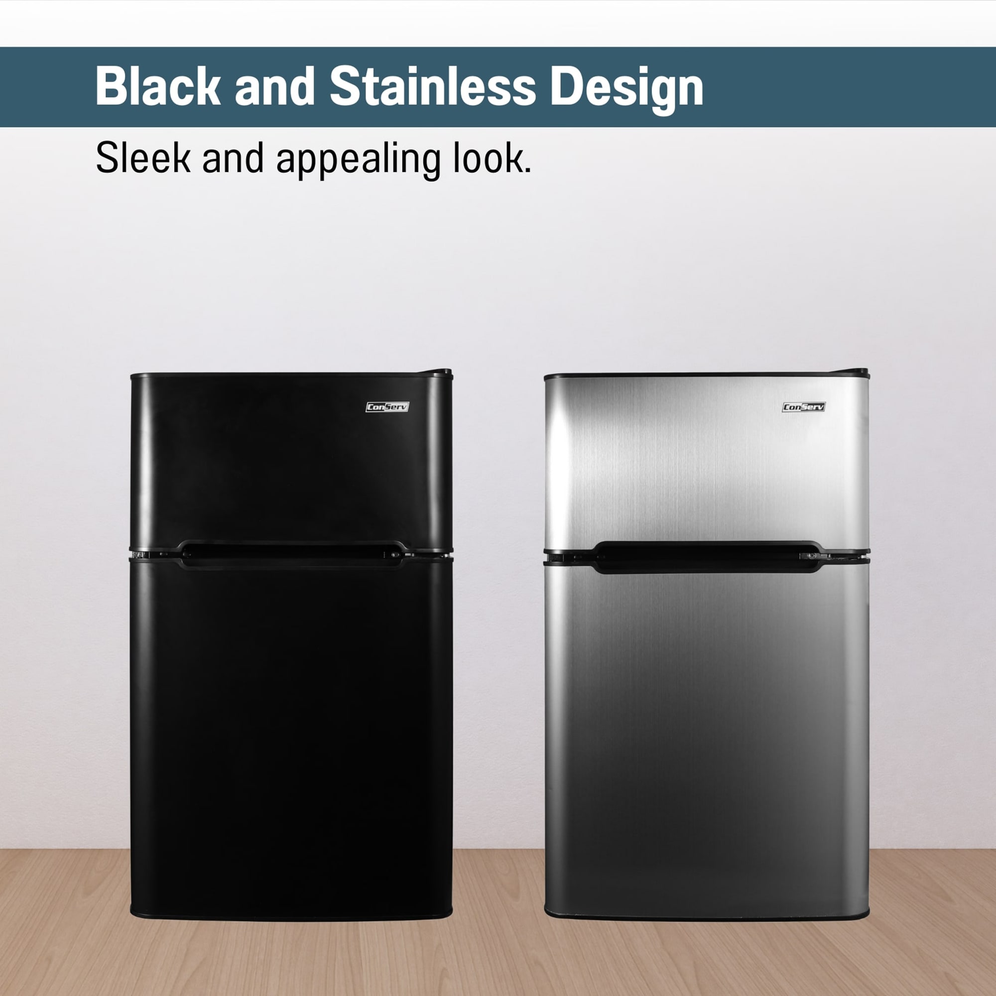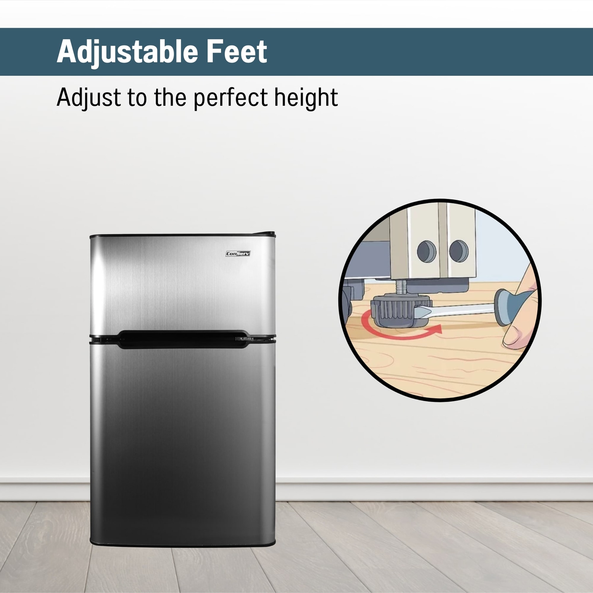 Short on space but in need of ample storage for your favorite foods and beverages? The ConServ 3.20 Cu. Ft. Stainless Compact Refrigerator Freestanding Compressor Cooling is the ultimate cooling solution for small spaces. Measuring 33.5 x 18.9 x 19.9 (HxWxD in inches), and weighing just under 58 pounds, this freestanding appliance can effortlessly be moved between rooms as needed. Inside the refrigerator, there is 2.24 cu. ft. of storage space, and in the freezer, there is 0.93 cu. ft. of room. The unit is powered by reliable, eco-friendly compressor cooling. Easily set the temperature of the refrigerator between 32°F to 50°F, and the freezer between 6.8°F and -4°F. When organizing the contents of the CRF 320, enjoy the convenience of using a crisper tray, two glass shelves, and a wire bottle rack. You can also store up to six cans in the built-in door can dispenser. Other noteworthy features include an interior light, reversible door, adjustable legs, and manual defrosting. UL certified.