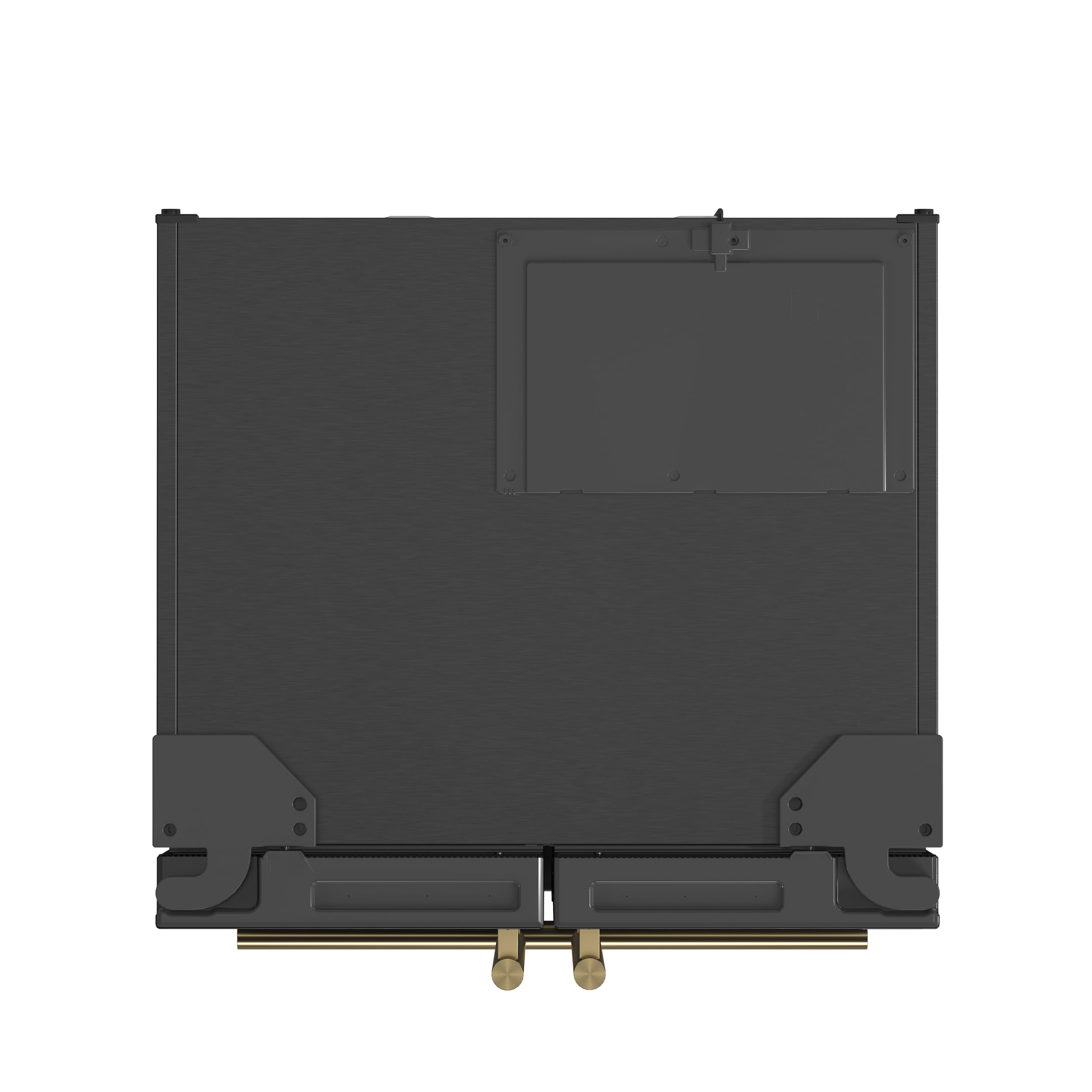 Sleek black-finished doors with antique brass handles provide a stylish and customizable option.