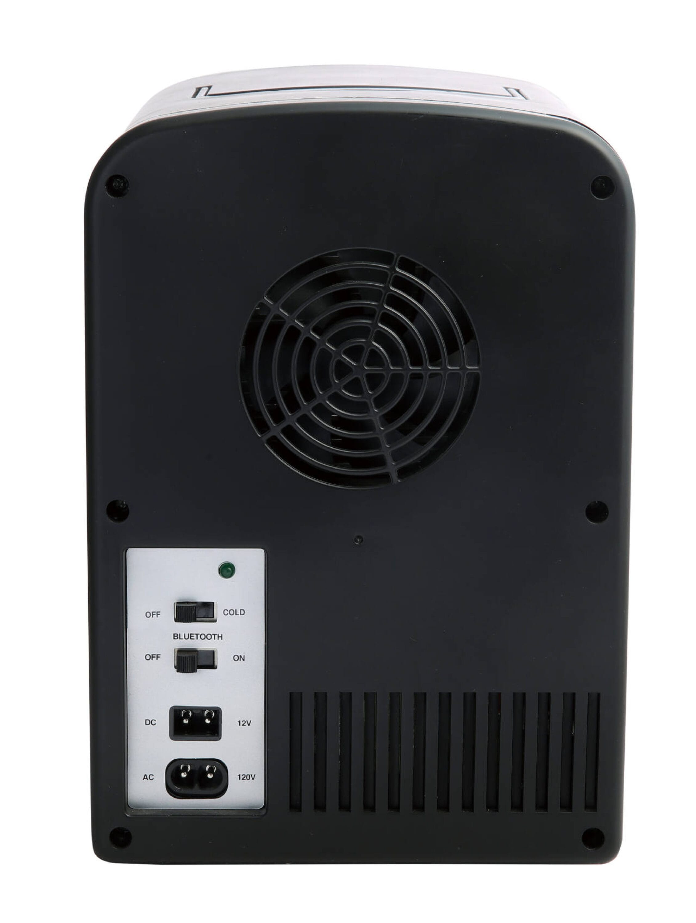 4 Liter capacity chills six 12 ounce soda cans and includes removable shelf so you can store small items