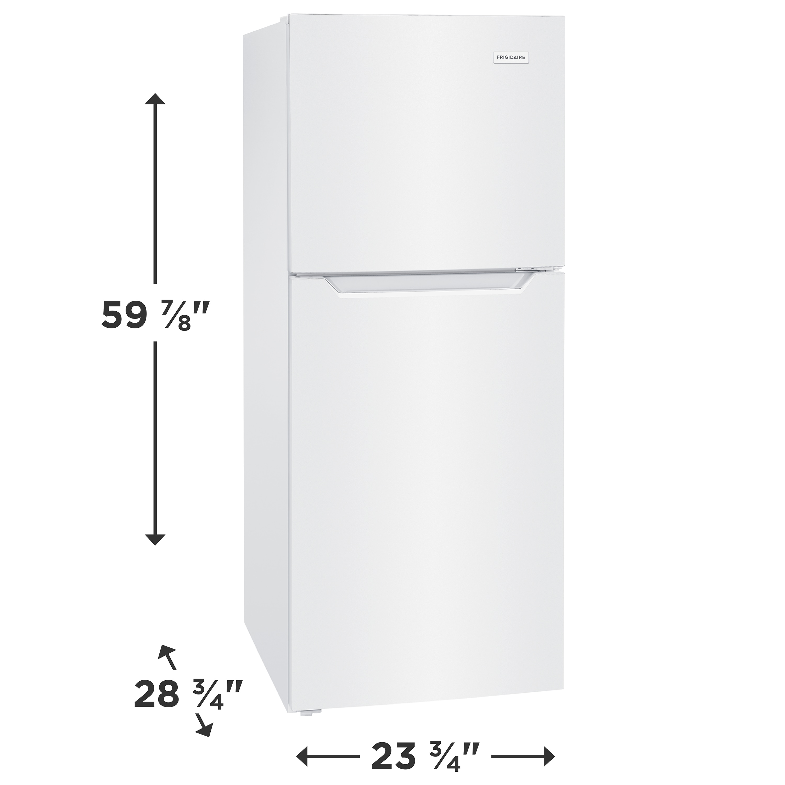 The Frigidaire 11.6 cu. Ft. apartment-size top freezer refrigerator has adjustable shelving and humidity control crisper drawers for storing fruits and vegetables. It is also equipped with bright lighting to keep contents clearly visible. E-star certification saves on energy costs and reversible doors and rear rollers accommodate your installation needs.