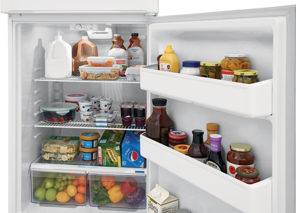 This Frigidaire 18 cu. Ft. top freezer refrigerator offers a timeless style with the latest cooling technology. Our EvenTemp™ Cooling System prevents unwanted freezing by optimizing airflow and ensures a consistent temperature throughout your refrigerator. The spacious interior storage enables you to easily organize your family’s favorites with two wire shelves, spacious door bins, and a full-width glass freezer shelf.