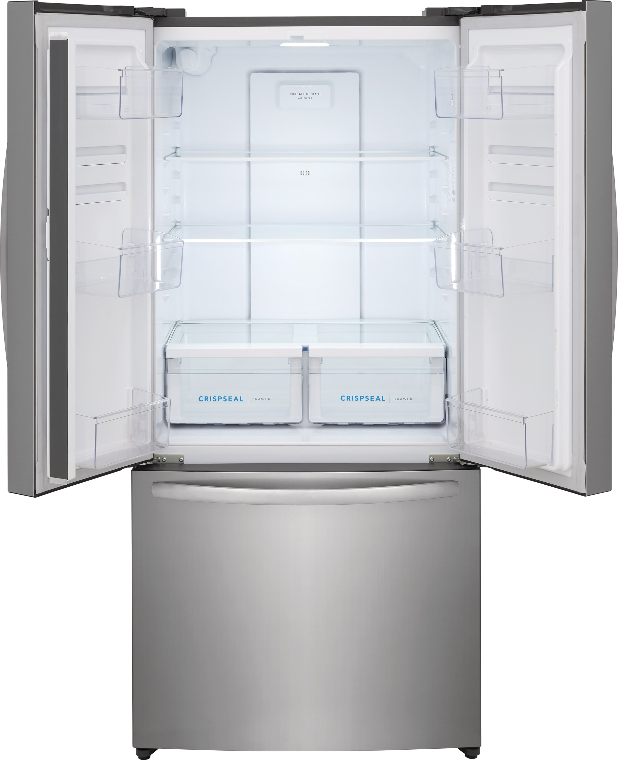 This 31.5-in Frigidaire French door refrigerator helps keep fruits and vegetables fresh for longer with our CrispSeal® crispers, which block out dry air from entering your crisper. Also find a place for all your favorites with our gallon door bin storage, edge to edge glass shelves and a 3 tier freezer storage.