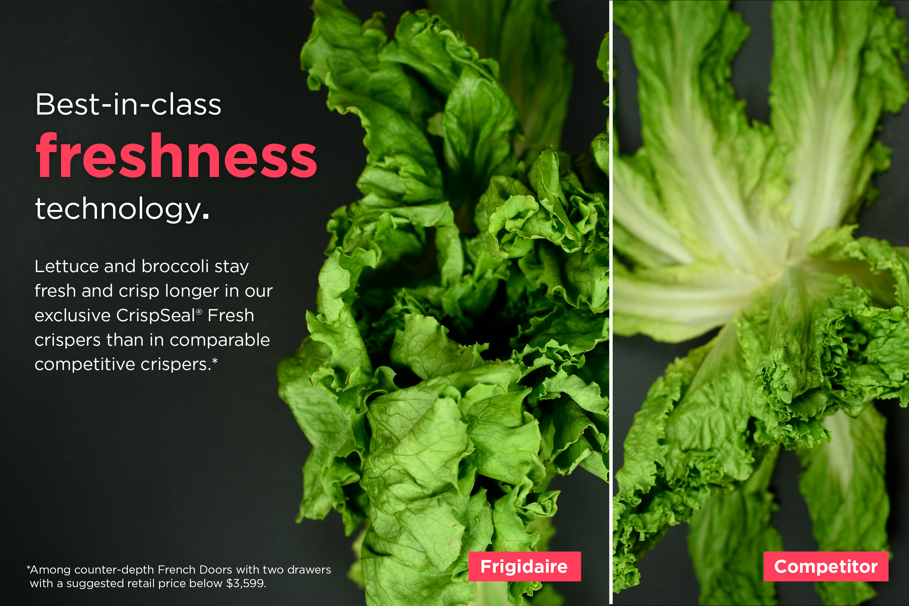 This Frigidaire Gallery French door refrigerator maintains the taste and texture of even your most delicate foods. Our freshness system is packed with technologies that keep food fresh and reduce food waste, such as our cooling system, advanced crispers, and our genuine air and water filtration.