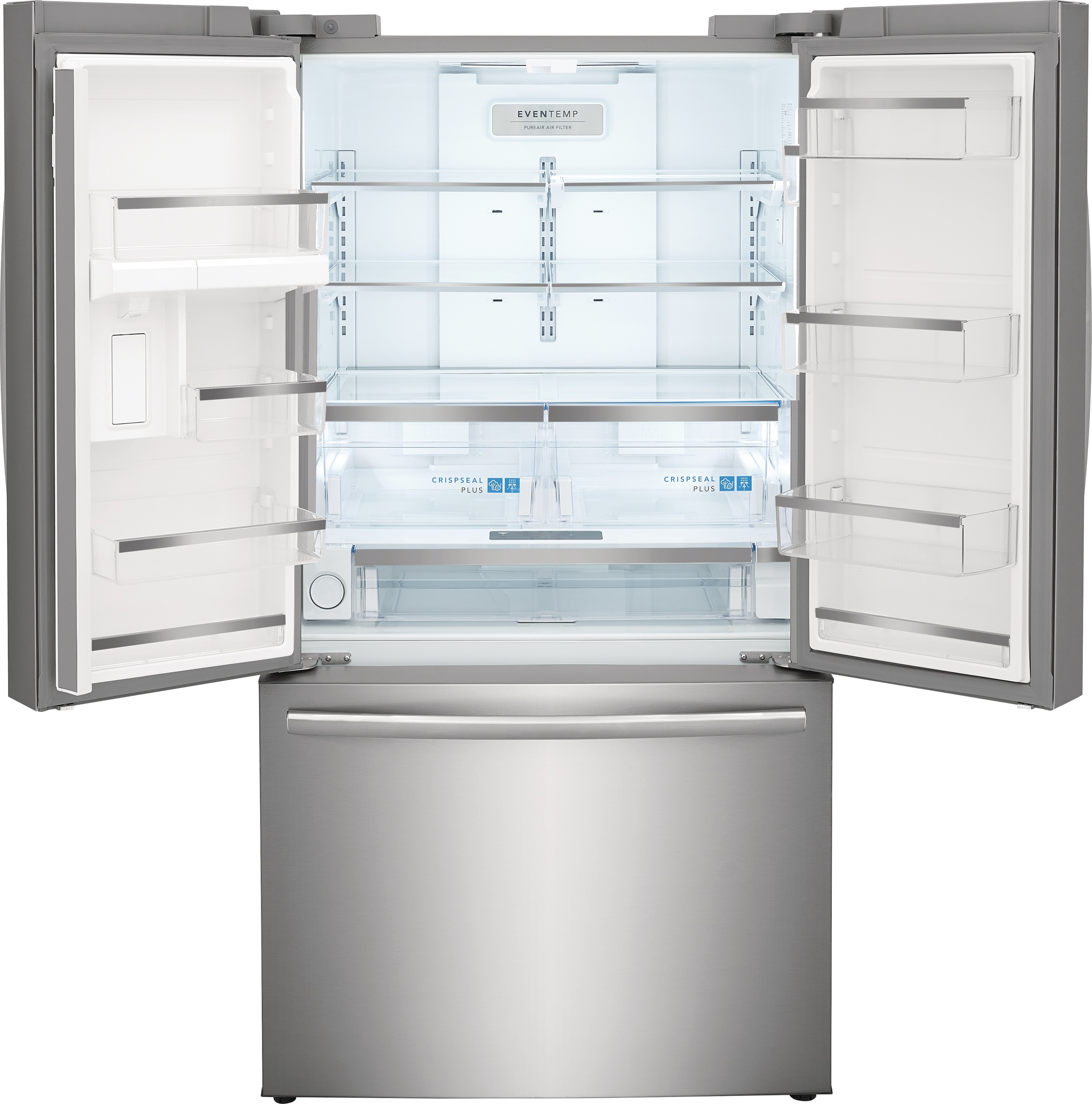 This Frigidaire Gallery French door refrigerator offers a freshness system that maintains the taste and texture of even your most delicate foods. Our freshness system is packed with technologies that keep food fresh and reduce food waste, such as our cooling system, advanced crispers, and our genuine air and water filtration.