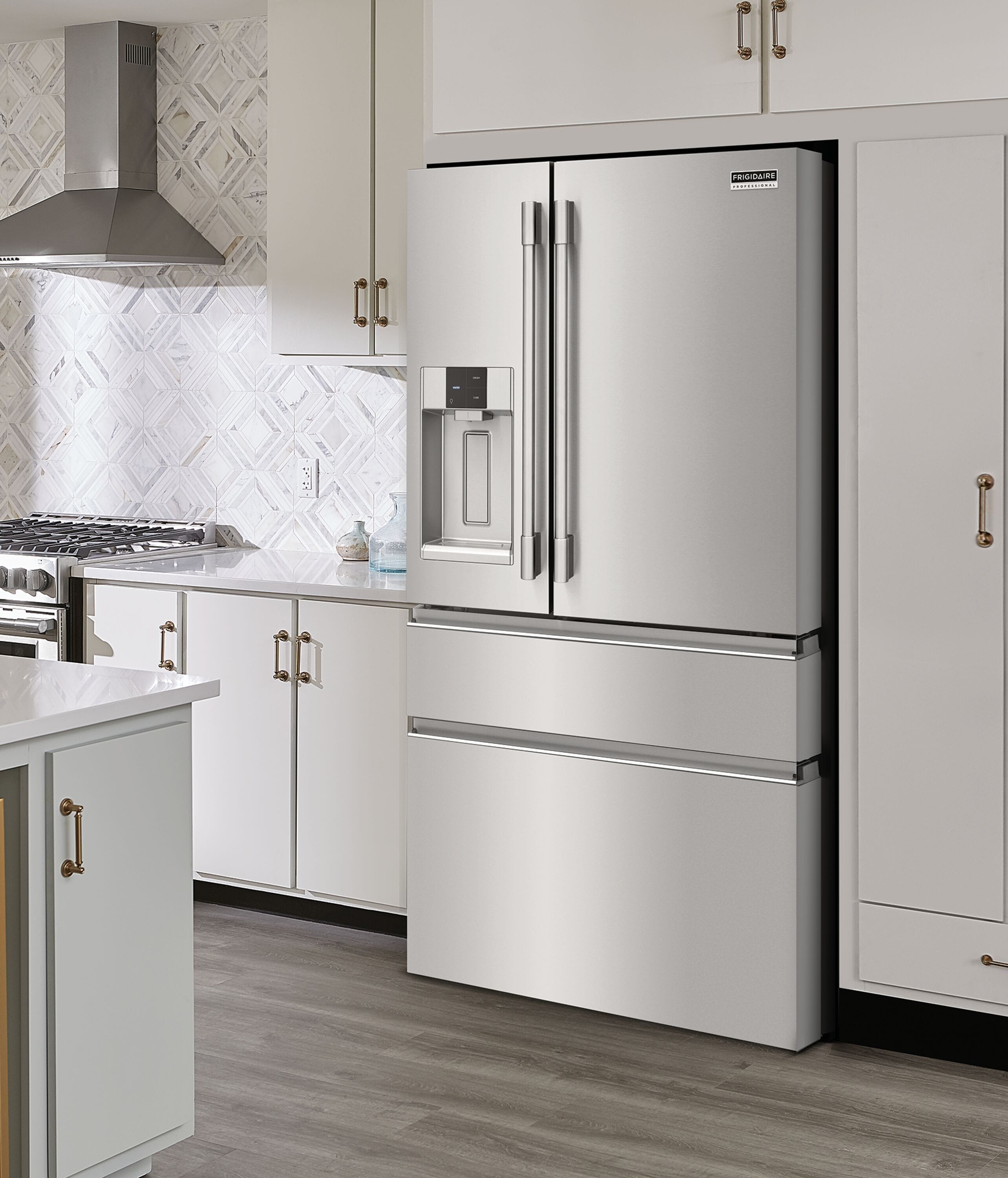 Frigidaire Professional Counter-Depth 21.4-cu ft 4 -Door French Door Refrigerator with Dual Ice Maker with Water and Ice Dispenser ( Smudge-Proof Stainless Steel ) ENERGY STAR Certified