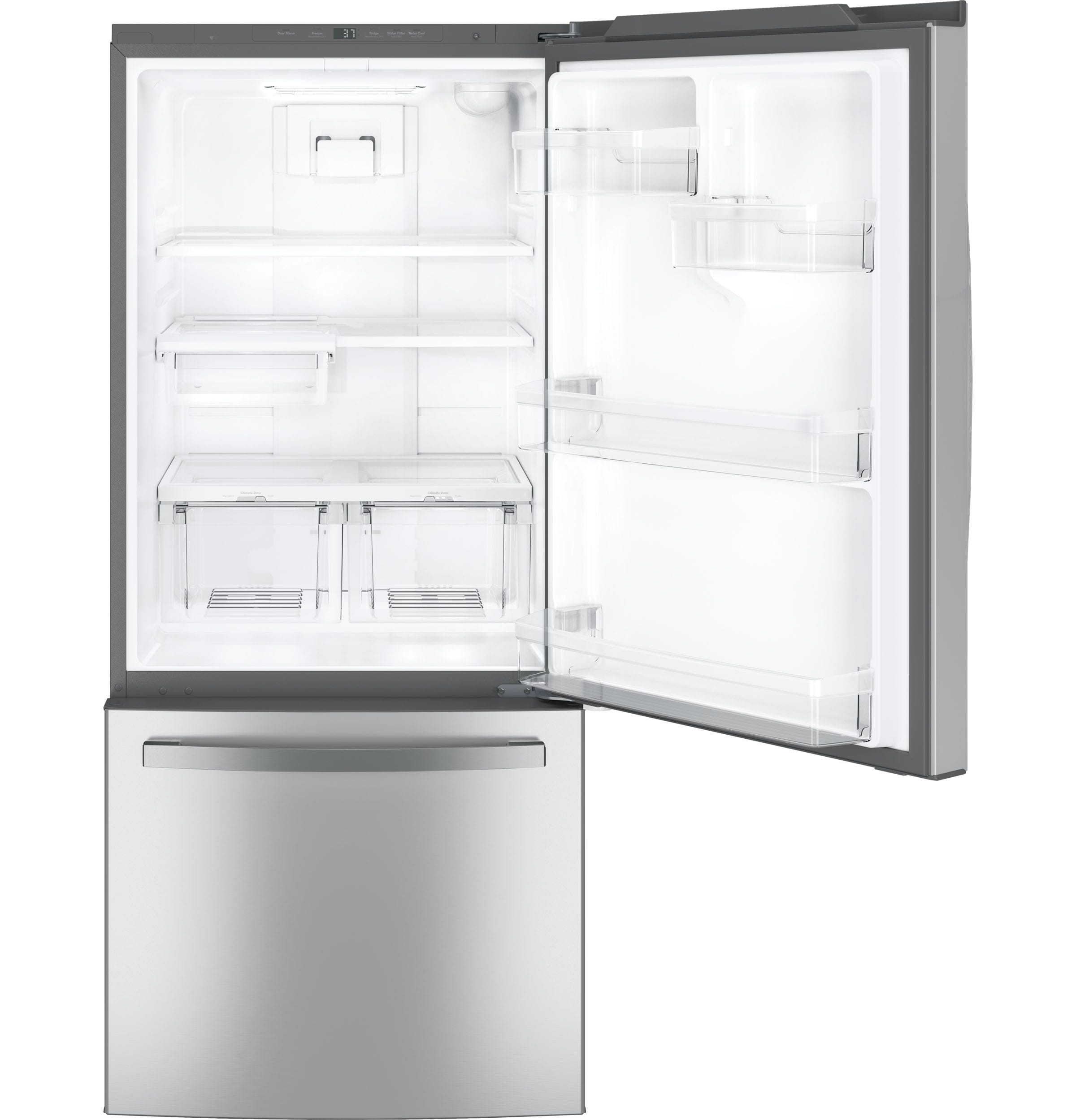 GE 20.9-cu ft Standard-Depth Bottom-Freezer Refrigerator with Ice Maker ( Stainless steel ) ENERGY STAR Certified