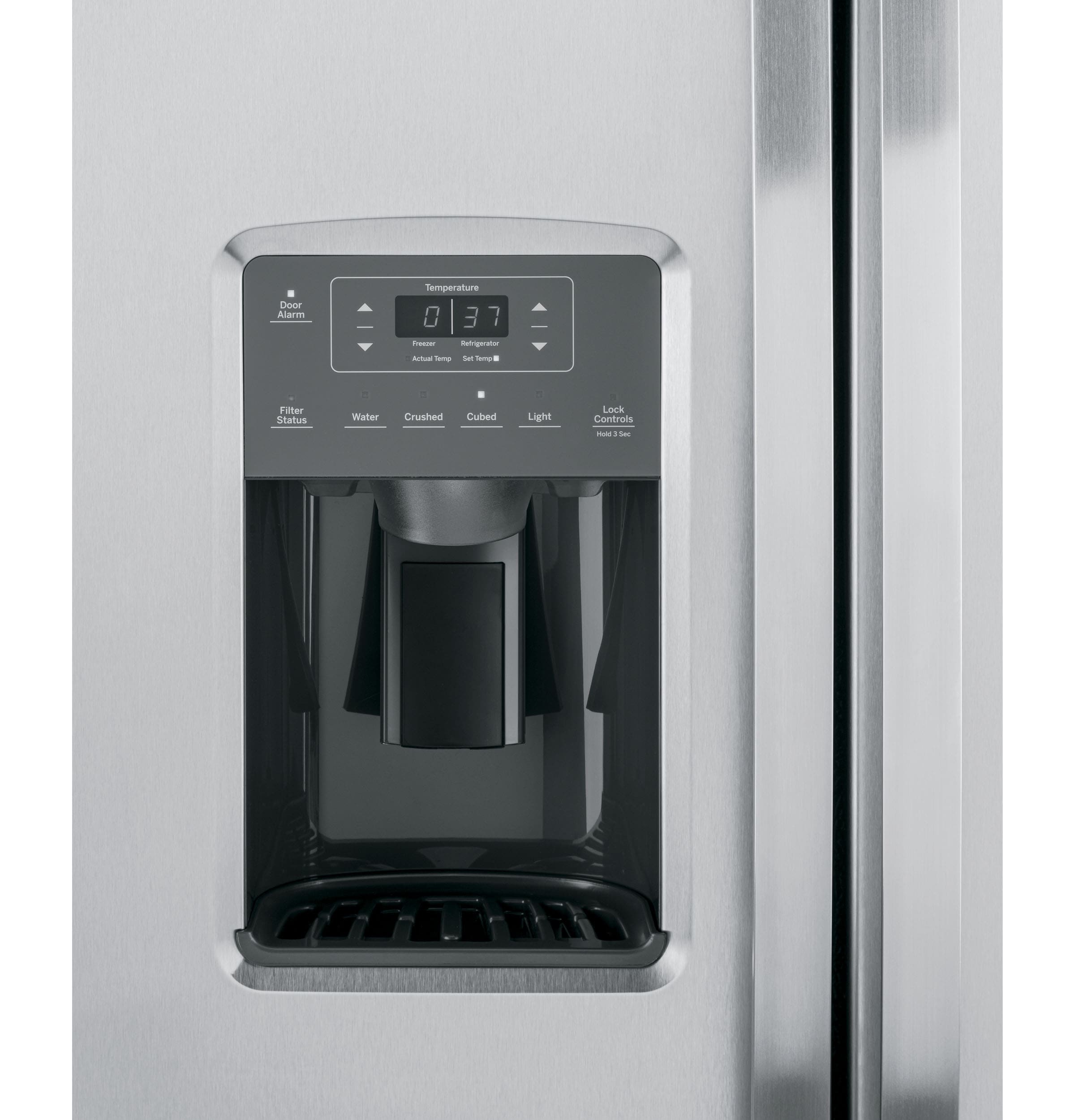 External Dispenser – easily access clean water and filtered ice from a dispenser conveniently located on the outside of the door