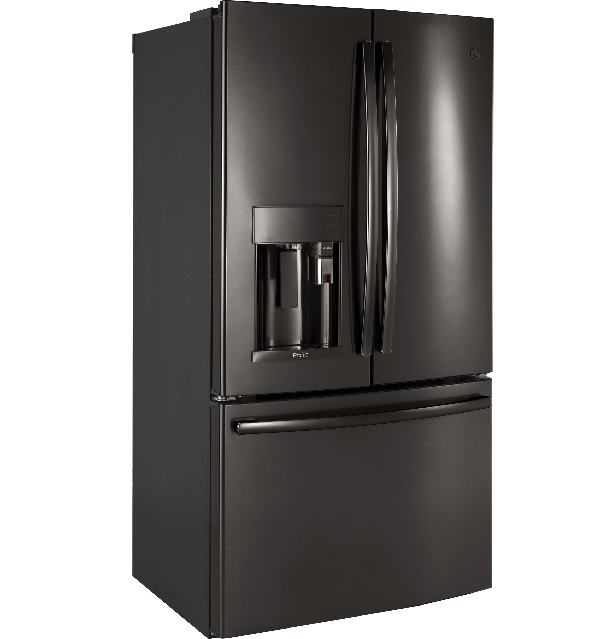 GE Profile Counter-Depth 22.2-cu ft 3 -Door French Door Refrigerator with Ice Maker with Water and Ice Dispenser ( Black Stainless ) ENERGY STAR Certified