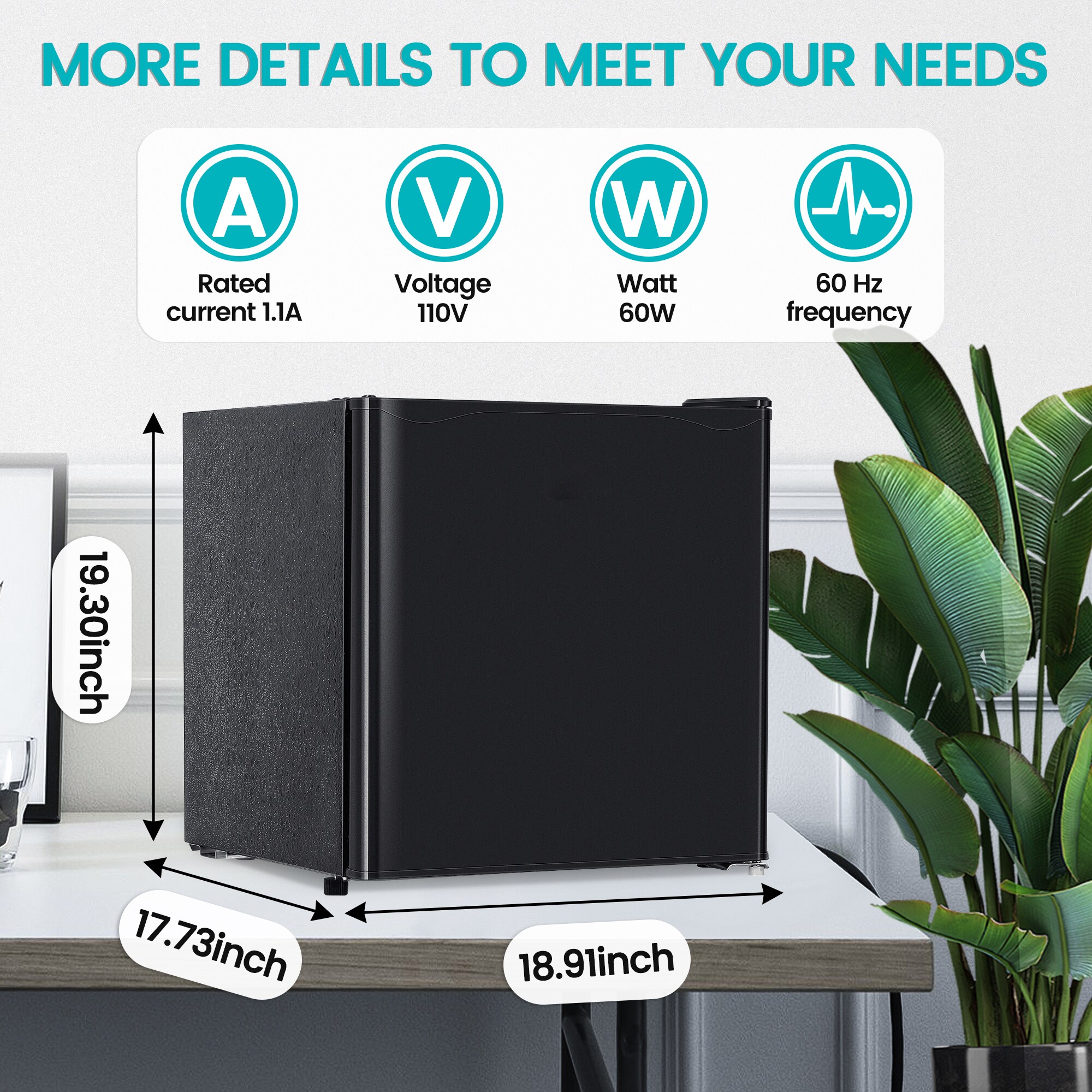 1.6 Cu.Ft. Small Refrigerator is perfect for keeping your favorite beverage cool, fruit or other food fresh, and suitable for bedroom, dorm, office, bar, and outdoors. This small refridgerator has minimum temperature can reach 24.8 degree, and the maximum temperature can be controlled to 50degree, is also a freezer box in the refrigerator, which can store items that need to be kept below the freezing point can also be used to make ice. The 5-level thermostatic control system allows you to adjust the temperature you want freely. It has engery saving and low noise, and it will not affect our work and rest.