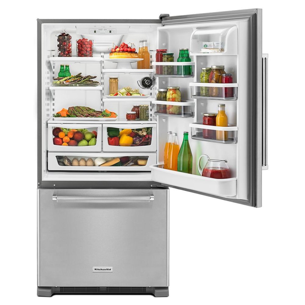 KitchenAid 22.07-cu ft Standard-Depth Bottom-Freezer Refrigerator Ice Maker Optional (sold separately) ( Stainless steel ) ENERGY STAR Certified