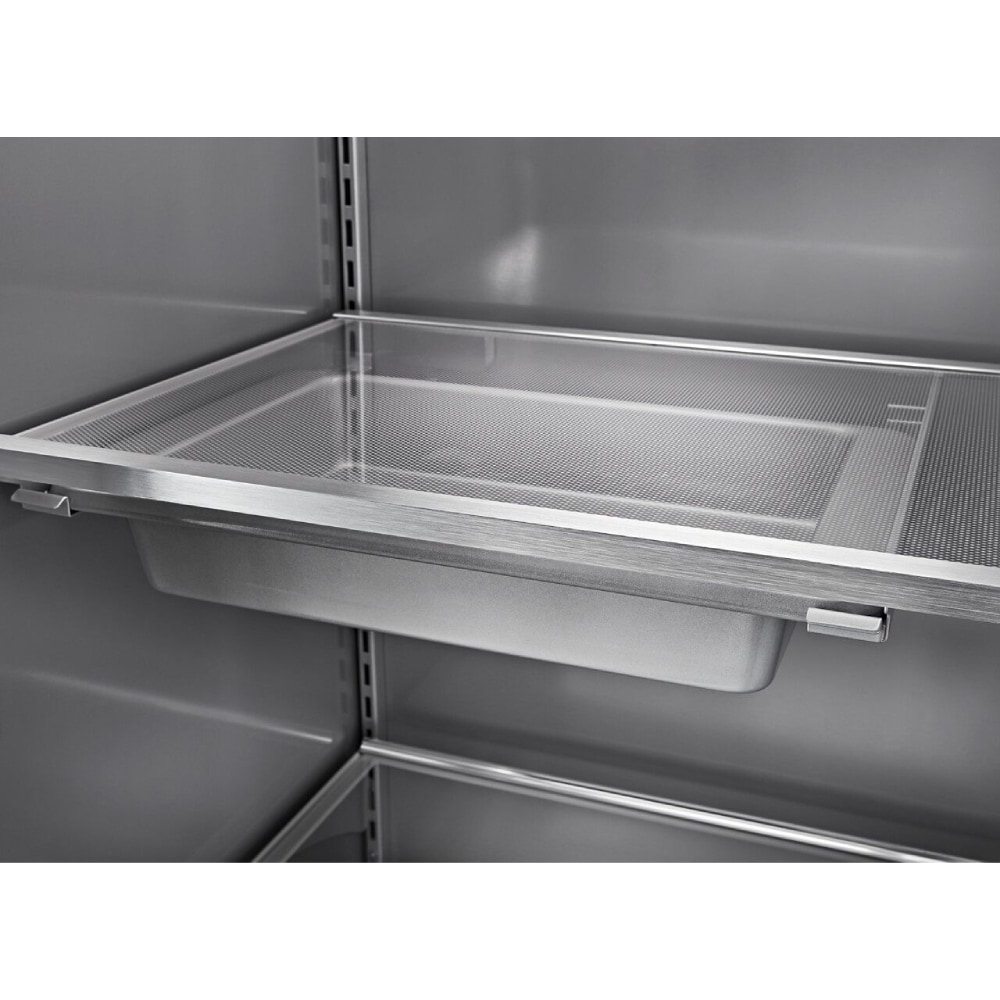 This premium 48” built-in refrigerator features PrintShield™ Finish to resist fingerprints outside, and innovative storage features inside. Like the Under-Shelf Prep Zone with included bakeware – ideal for storing food prep, chilling desserts and more. The Wood-Look Pull Out Tray keeps ingredients beautifully organized and is moisture- and stain-resistant. Plus, maintain optimal temperatures of your ingredients with the ExtendFresh™ Plus Temperature Management System.