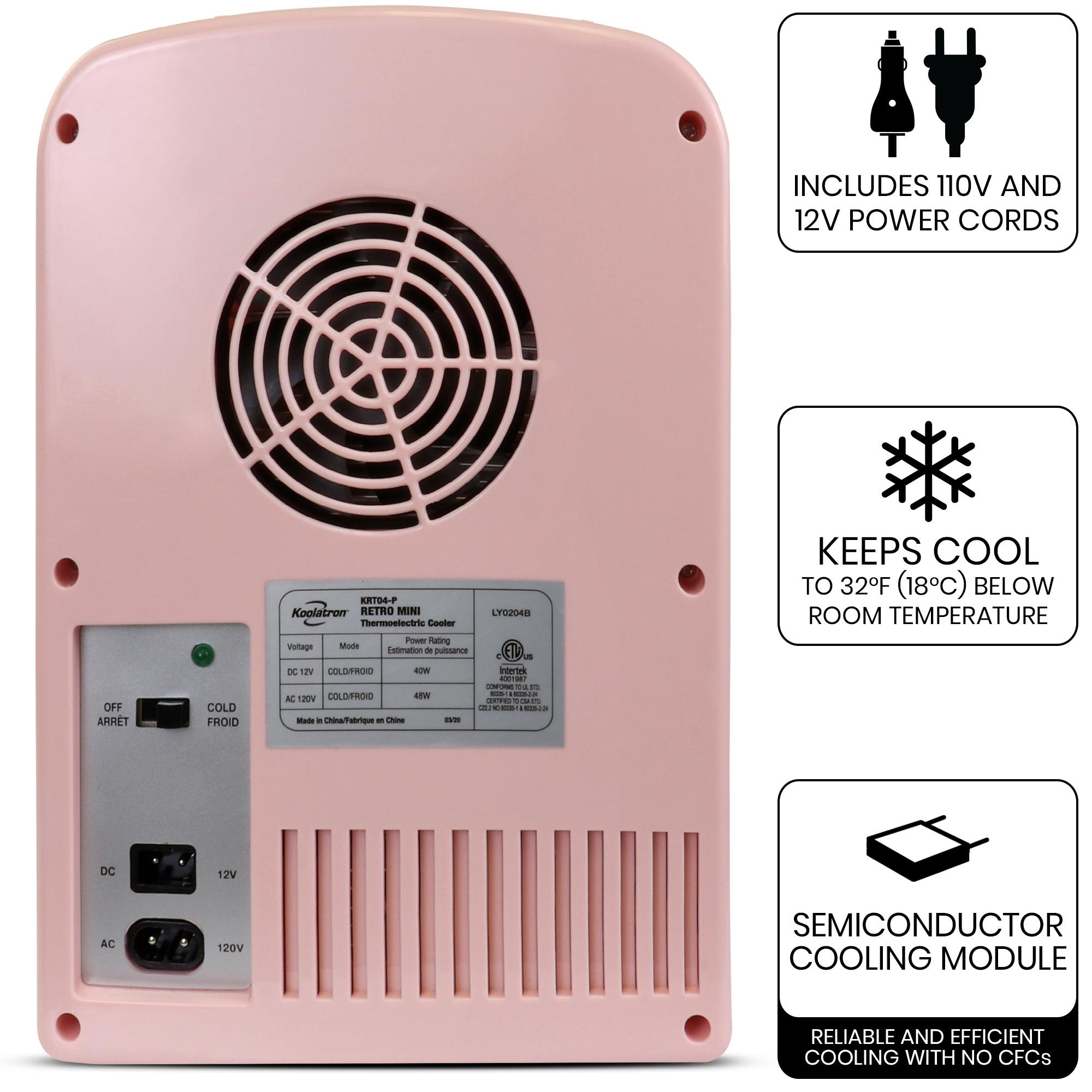 Koolatron 4L Retro Portable 6 can personal cooler 0.14-cu ft Mini Fridge ( Pink )