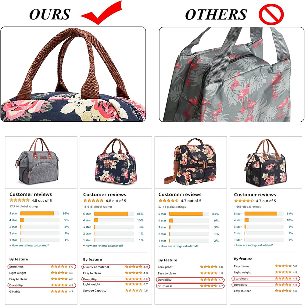 Lunch Bag Women Insulated Lunch Box Water-resistant Lunch Tote Thermal Lunch Cooler Soft Liner Lunch Bags (Peony)