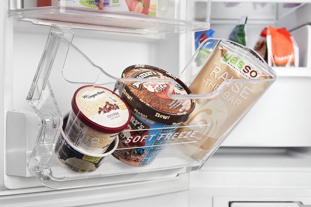 Soft freeze bin is a specially designed zone that controls the way foods freeze, so foods like ice cream are soft enough to scoop