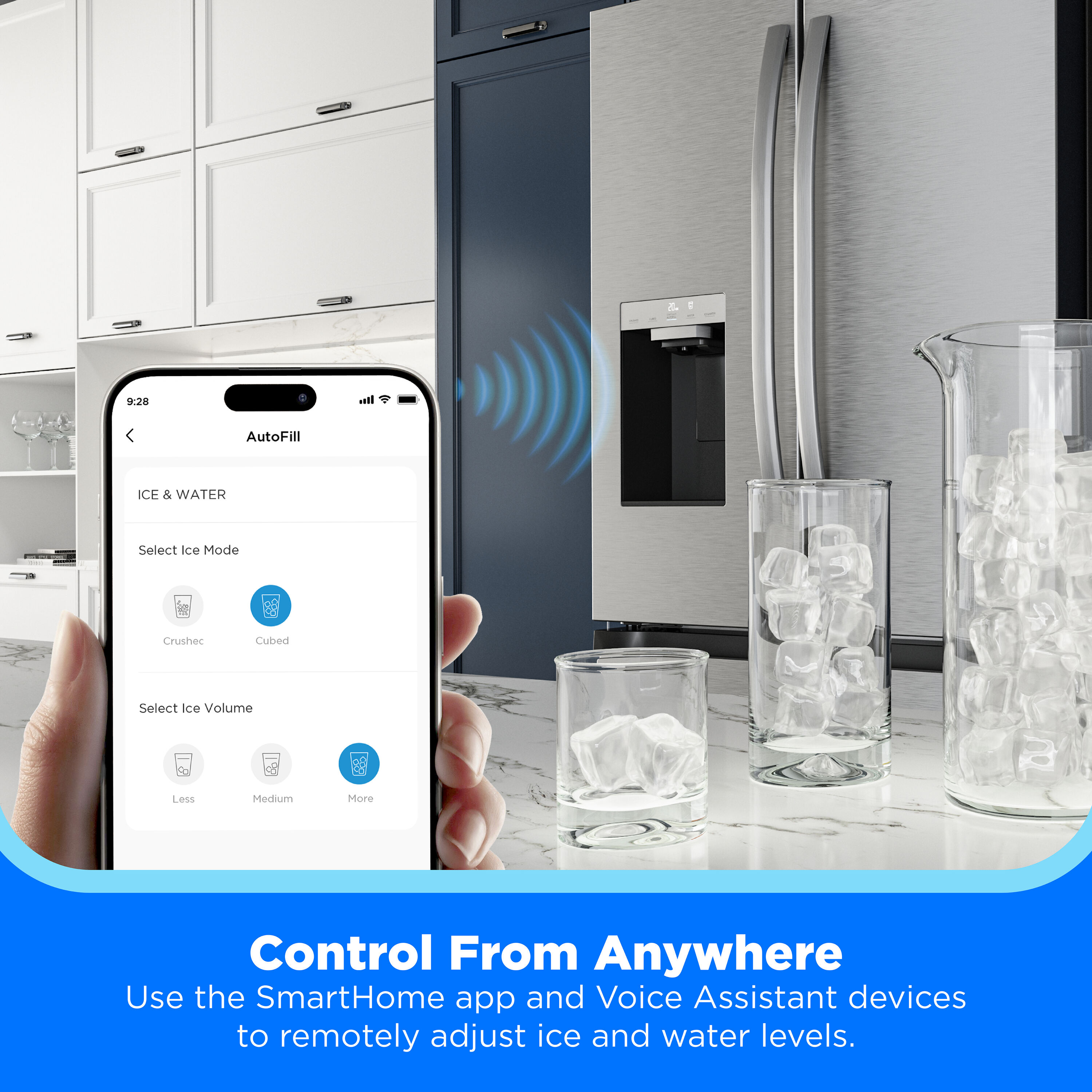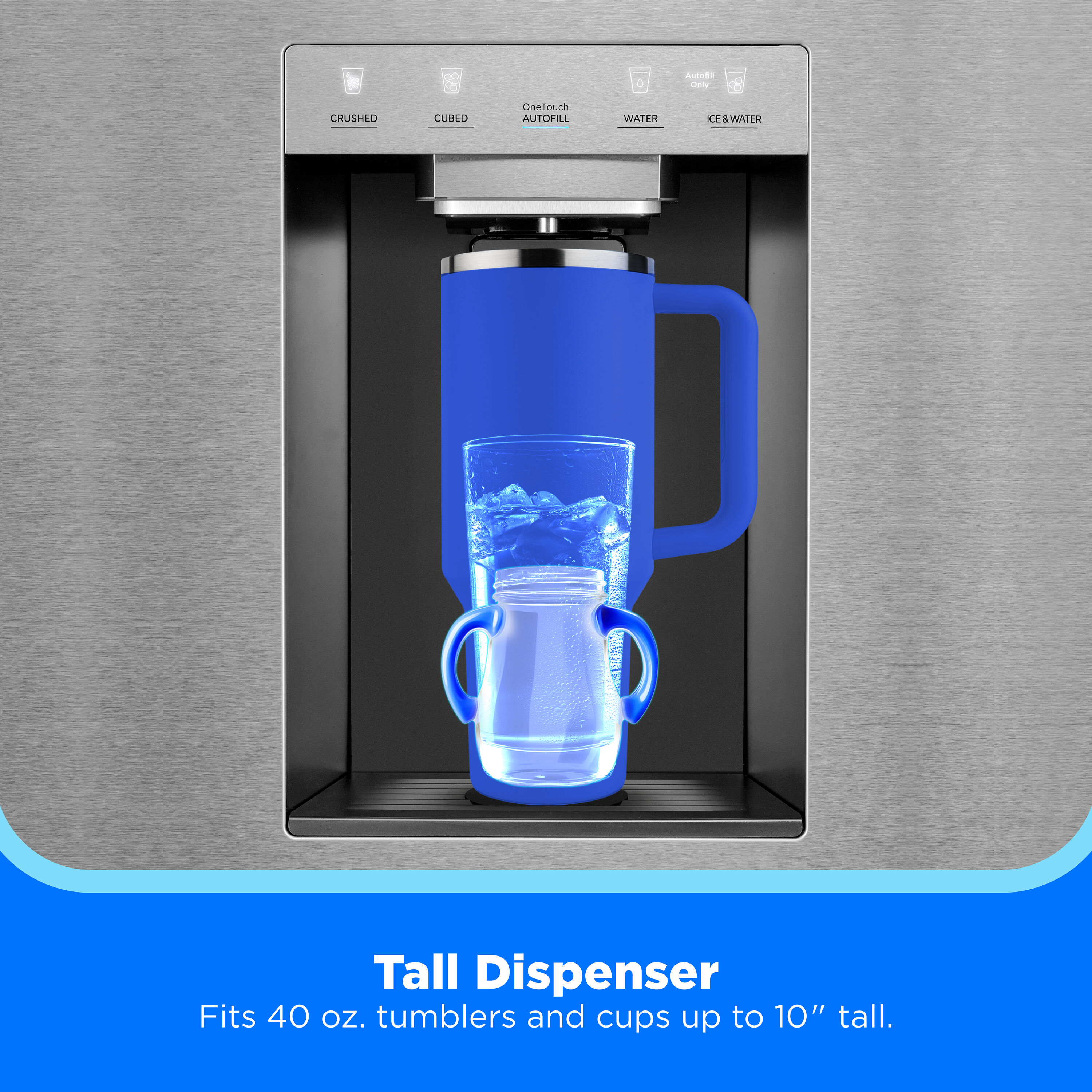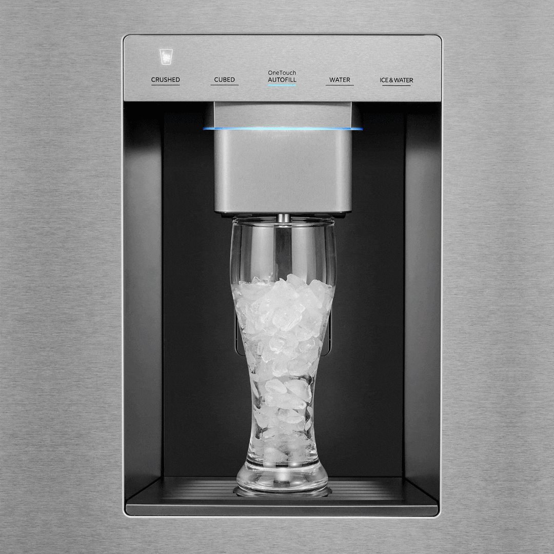 OneTouch AutoFill™: The industry’s first hands-free ice and water dispenser that automatically senses and dispenses—no need to hold the cup and wait.
