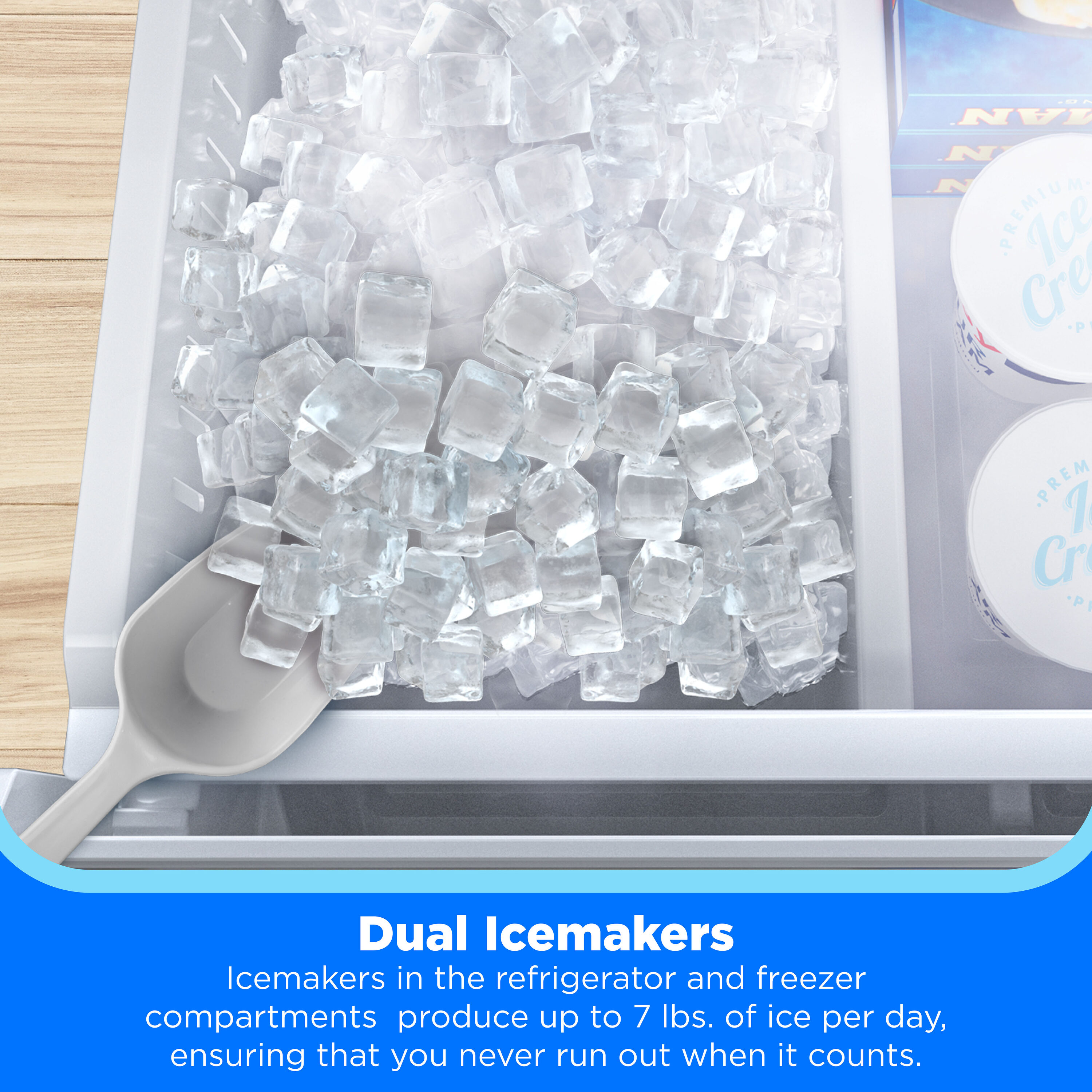 Dual Icemakers: Icemakers in the refrigerator and freezer compartments produce up to 7 lbs of ice per day, ensuring that you never run out of ice when it counts.
