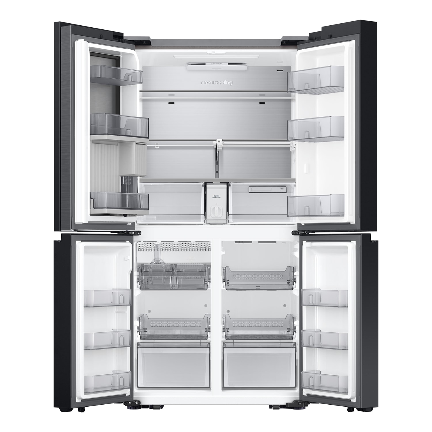 Samsung’s Bespoke 4-Door Flex Counter Depth 23 cu-ft Refrigerator with changeable door panels (Changeable door panels are sold separately) features Beverage Center that gives you an option to choose from an internal dispenser or a built-in AutoFill Water Pitcher, plus a Dual Ice Maker with Cubed ice and Ice Bites; FlexZone lets you convert from fridge to freezer with five adjustable settings