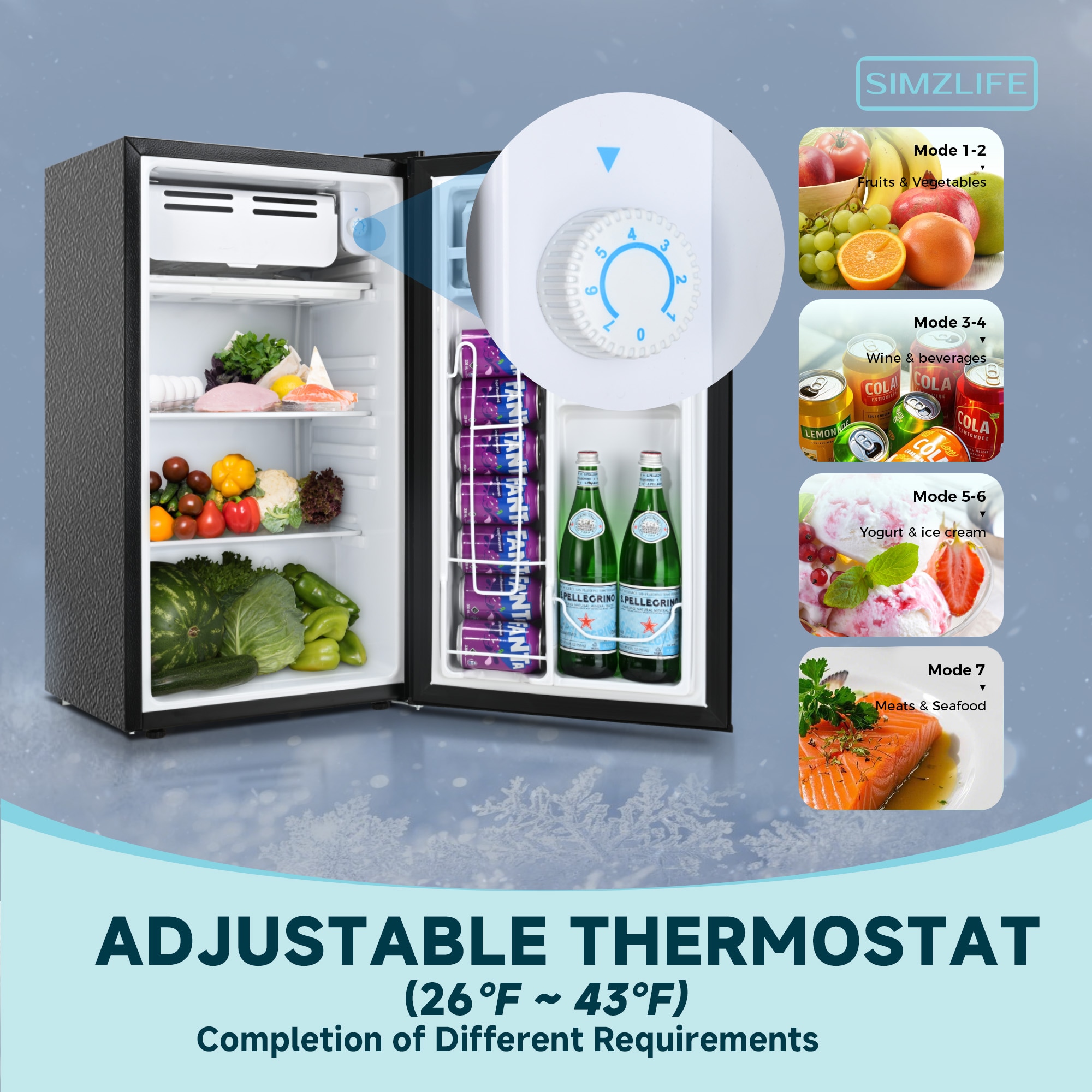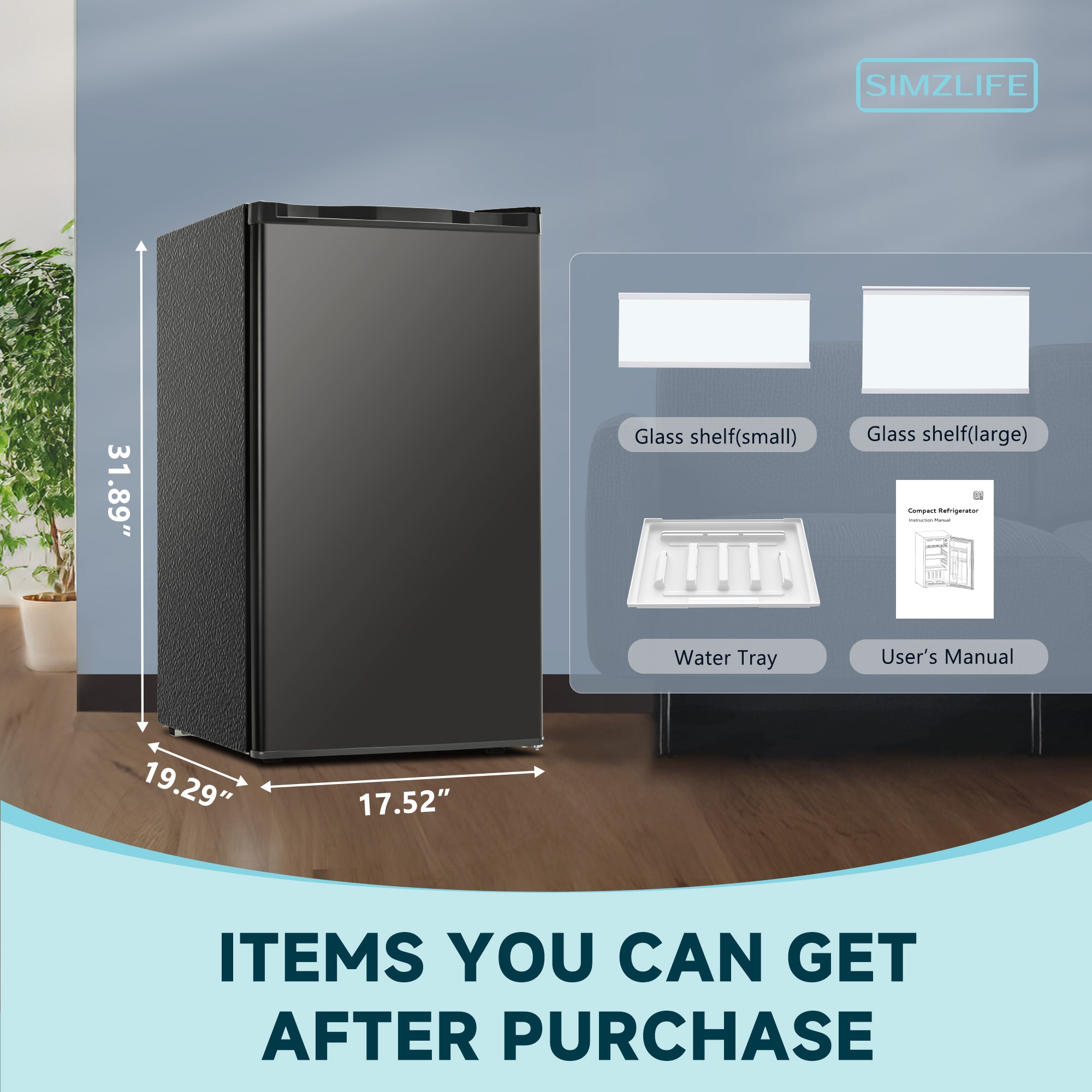 SIMZLIFE 3.2-cu ft Mini Fridge with Freezer ( Black ) Garage Ready