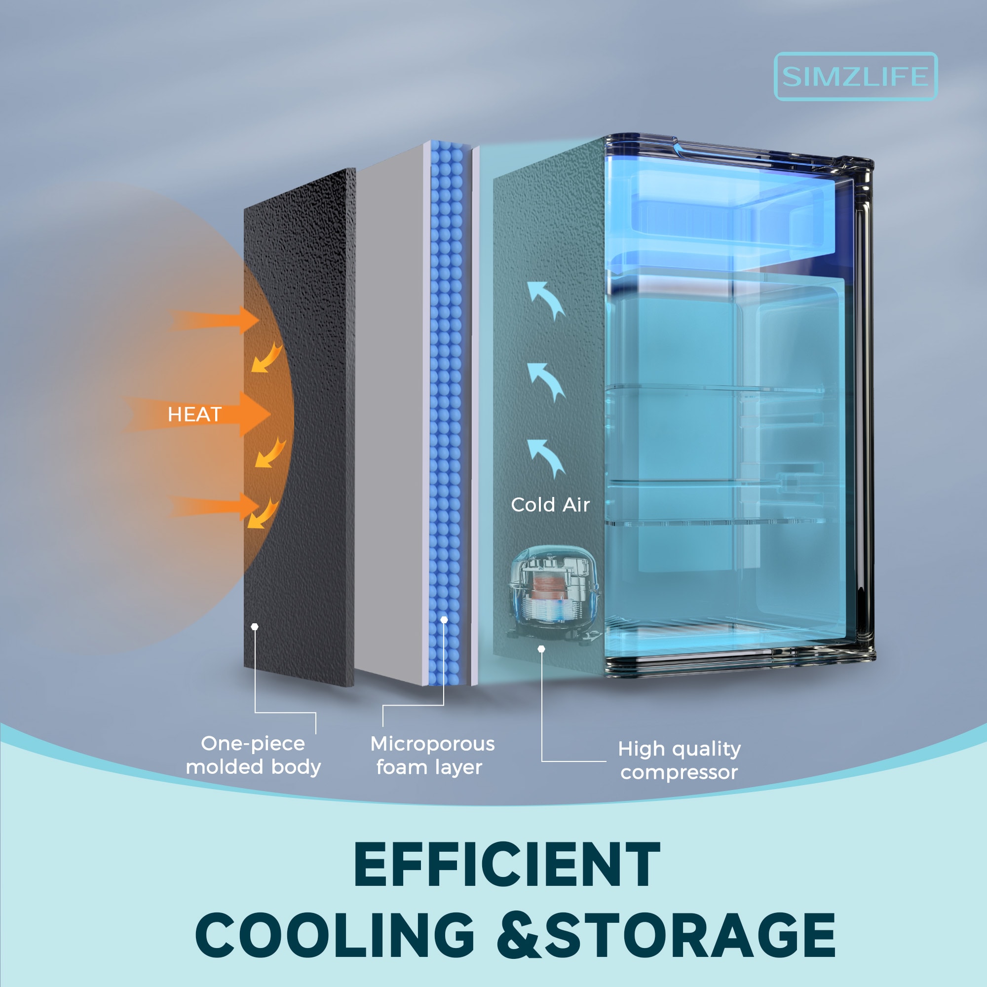 Our mini refrigerator, energy-saving and environmentally friendly, providing you with an efficient cold storage experience. Uniquely user-friendly design with LED light allows you to access it anytime at night with no restrictions. Featuring a large capacity of 3.2 cu. ft. including 2.9 cu. ft. refrigeration section and 0.3 cu. ft. micro-freezing section, it meets your various storage needs. Compact design for bedrooms, kitchens, dormitories and offices with a small footprint of only 2.2 square feet. Quiet operation, only 38dB, five-position temperature control knob, precise temperature adjustment, thoughtful details reflect quality.Our professional after-sales team is at your service 24 hours a day, and the product is fully equipped, so you can enjoy a convenient refrigeration experience.