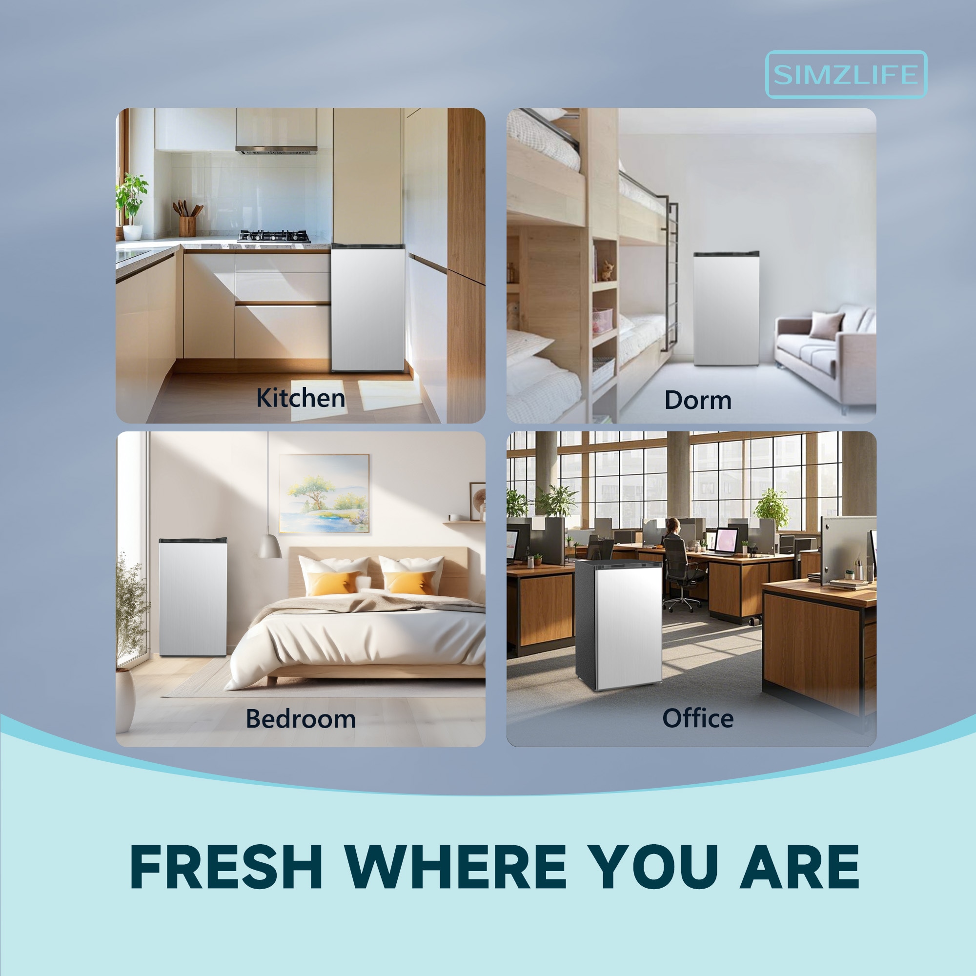 SIMZLIFE 3.2-cu ft Mini Fridge with Freezer ( Silver ) Garage Ready