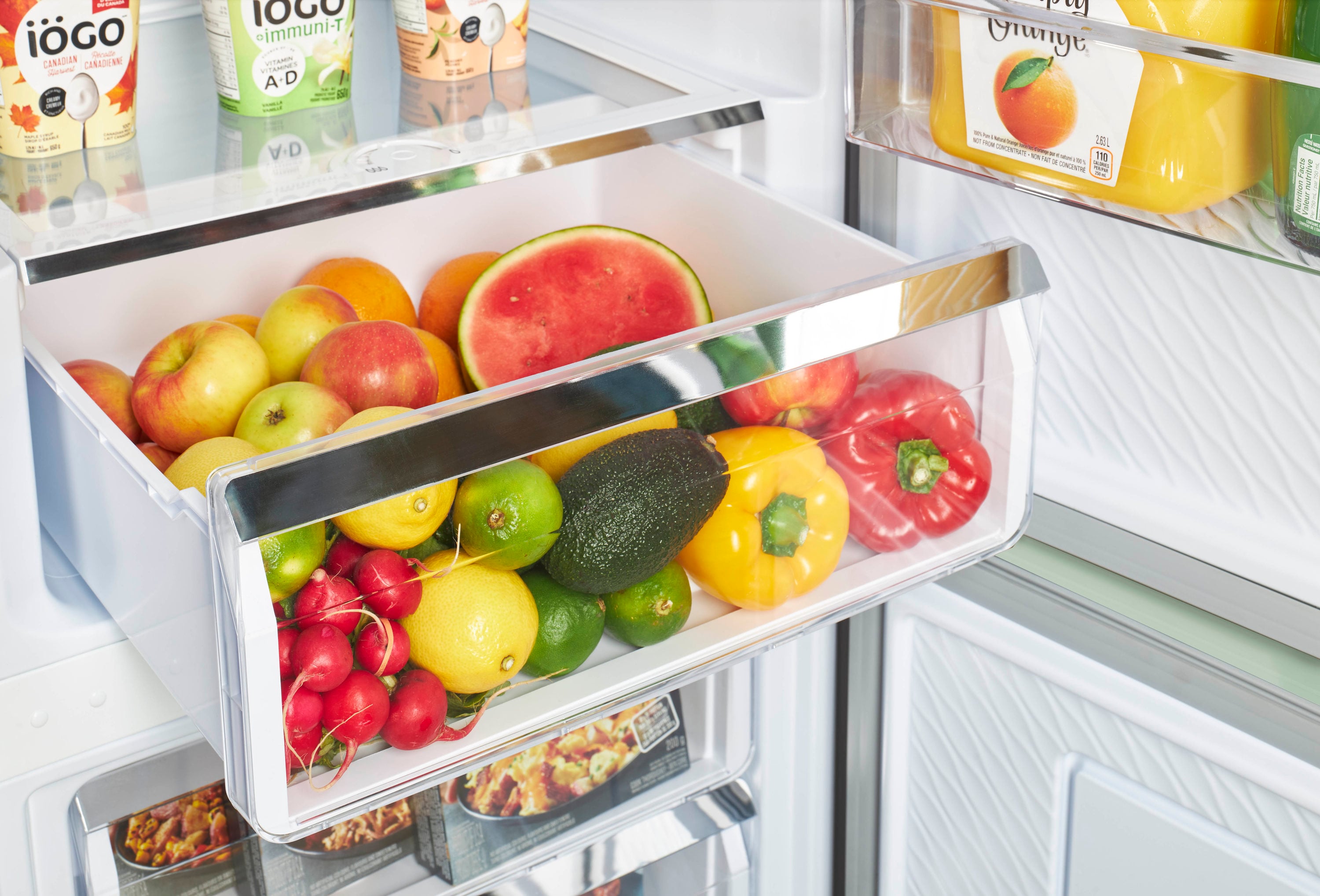 Deep crisper drawer for storing fresh produce