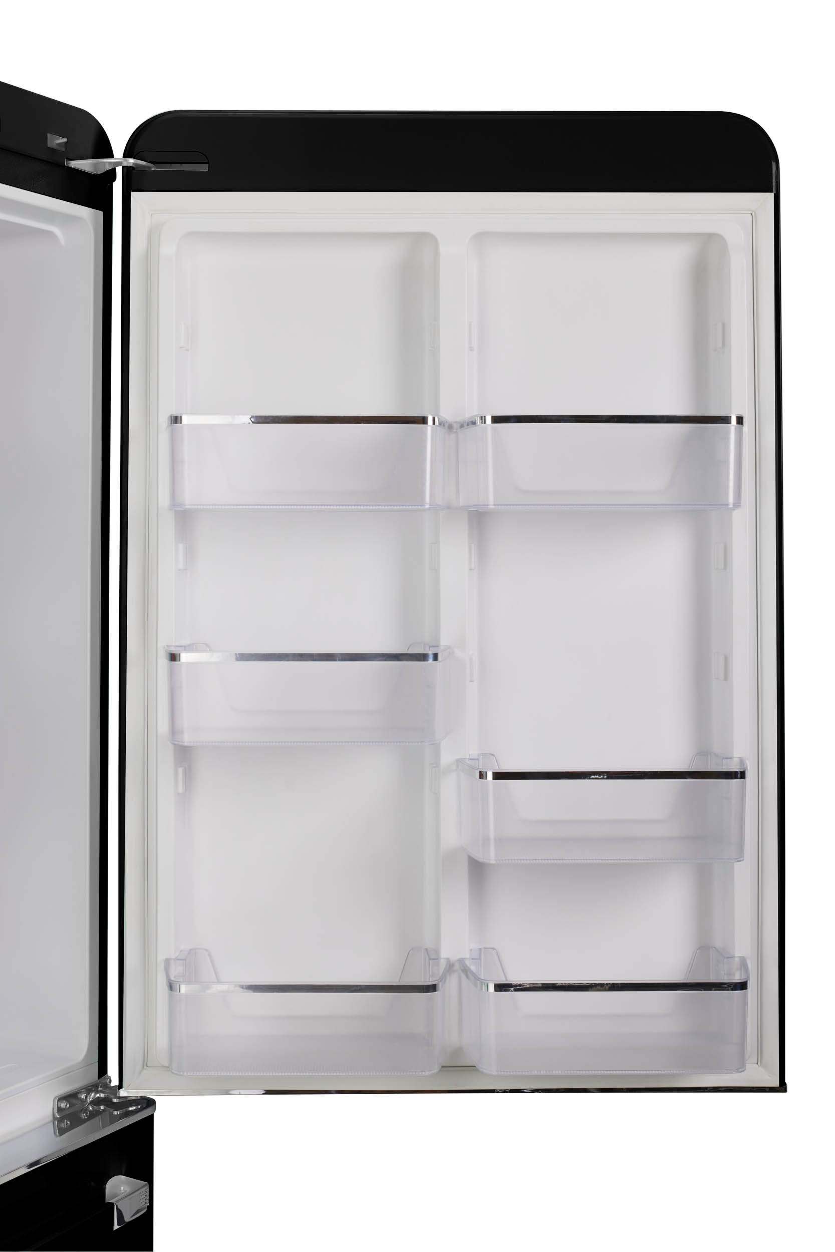 The 18 cu. Ft. Classic Retro counter-depth bottom mount refrigerator is the perfect family sized refrigerator with ample space to keep all your fresh and frozen foods, packaged in an eye-catching throwback design. This refrigerator is energy star certified for energy efficiency all year-round, designed for optimal energy savings and easy, dependable use. Its frost-free design allows easy cleaning without dealing with frost buildup. It also comes with a built-in icemaker. Create a Unique classic retro kitchen!