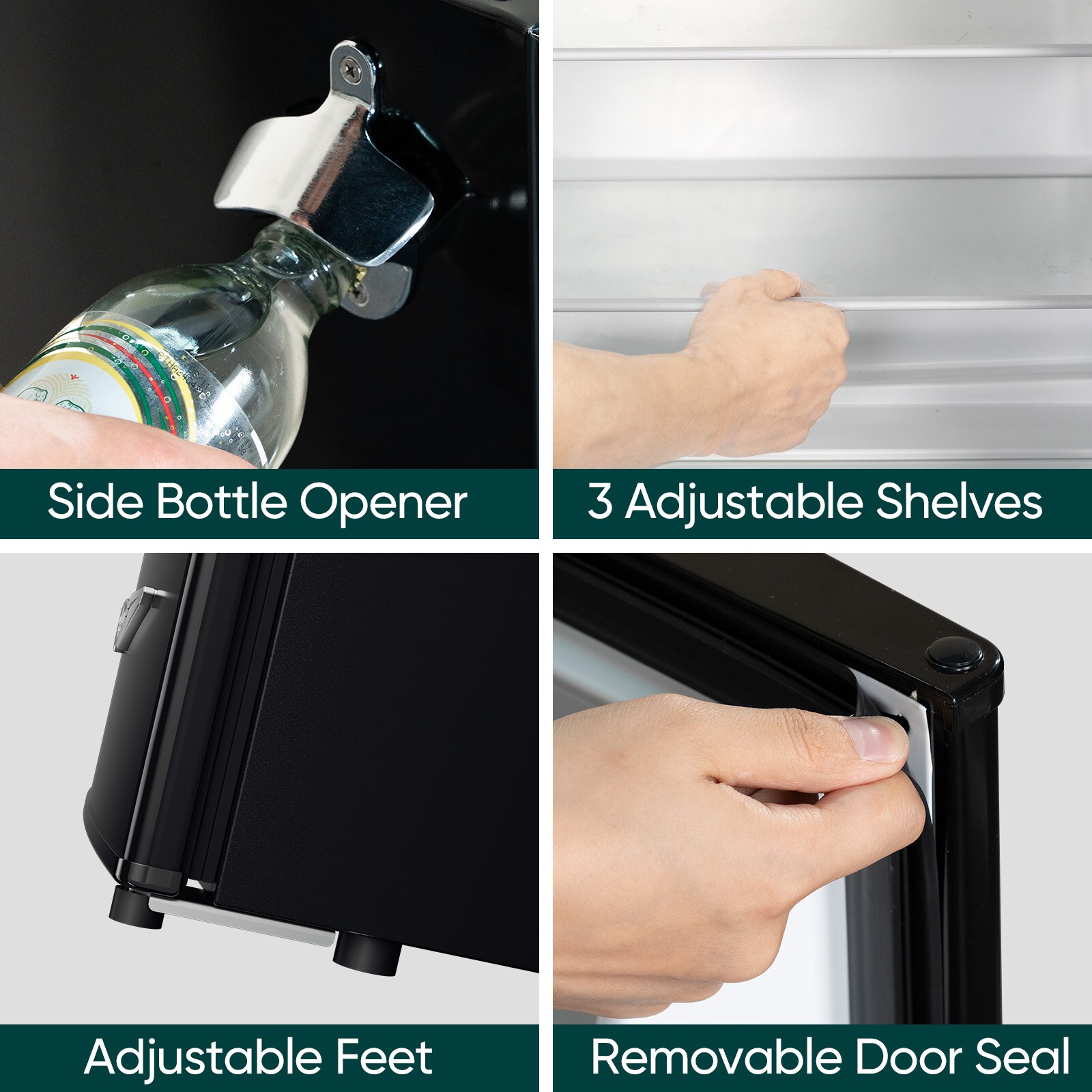 Featuring a classic exterior with metal handle and side bottle opener, the overall appearance of this retro refrigerator is stylish and high texture.