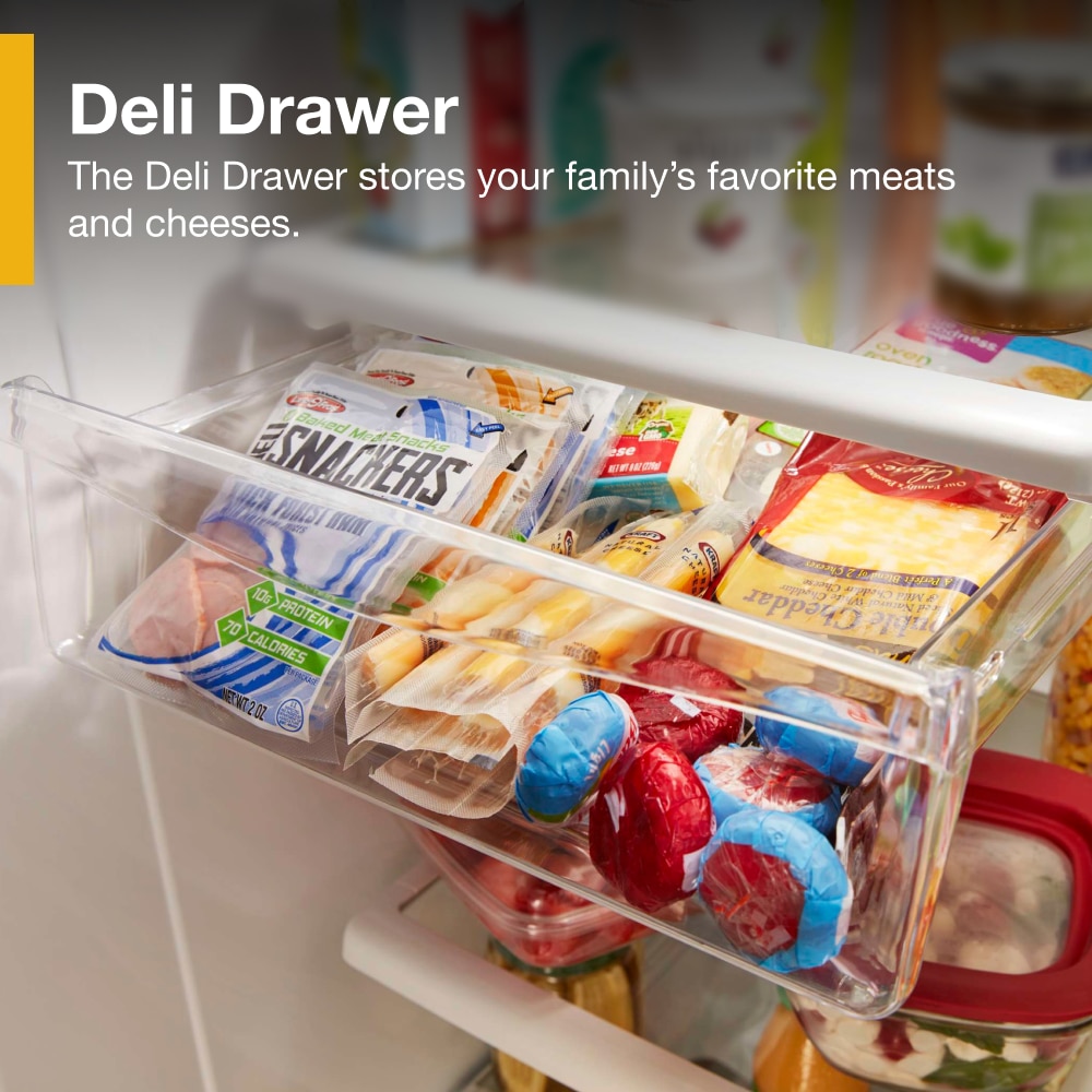 Conveniently store your family’s essentials. This Whirlpool® Bottom-Freezer Refrigerator has a 22 cu. ft. capacity and a freezer drawer that keeps frozen items in close reach. Features include a FreshFlow™ Produce Preserver that keeps fruits and vegetables in the ideal environment, an Accu-Chill™ Temperature Management System that cools items quickly and a Factory-Installed Icemaker. This model is ENERGY-STAR® certified.
