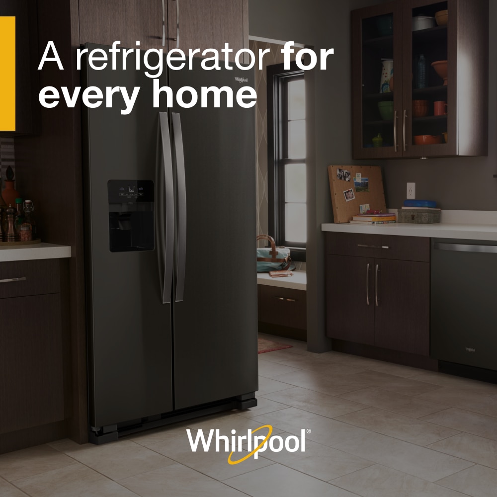 Enjoy purposefully designed storage spaces for the items your family uses the most. This Whirlpool® 25 cu. ft. Side-By-Side Refrigerator is designed with features to help you fit and find your favorite foods, like an in-door Can Caddy, Frameless Glass Shelves that offer greater storage flexibility and a Deli Drawer. This model also allows access to fresh filtered water and ice without ever opening the refrigerator door. Whirlpool® Side-by-Side Refrigerators have the lowest repair rate among side-by-side refrigerators. (*Claim compares Whirlpool branded refrigerators to GE, Frigidaire, Samsung and LG.Based on service required data, Q2 2022-Q2 2023, Traqline – The Stevenson Company, 2023.)