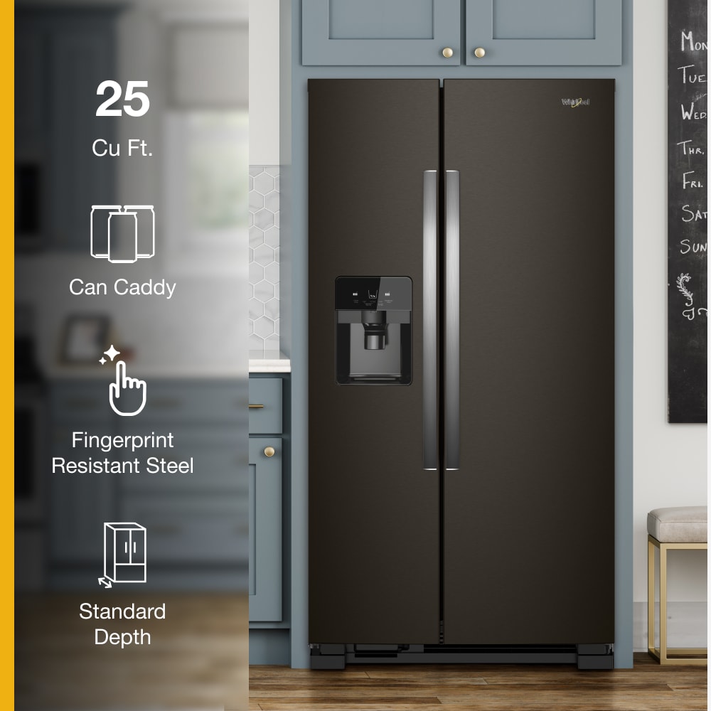 Whirlpool 24.5-cu ft Side-by-Side Refrigerator with Ice Maker ,Water and Ice Dispenser ( Fingerprint Resistant Black Stainless )