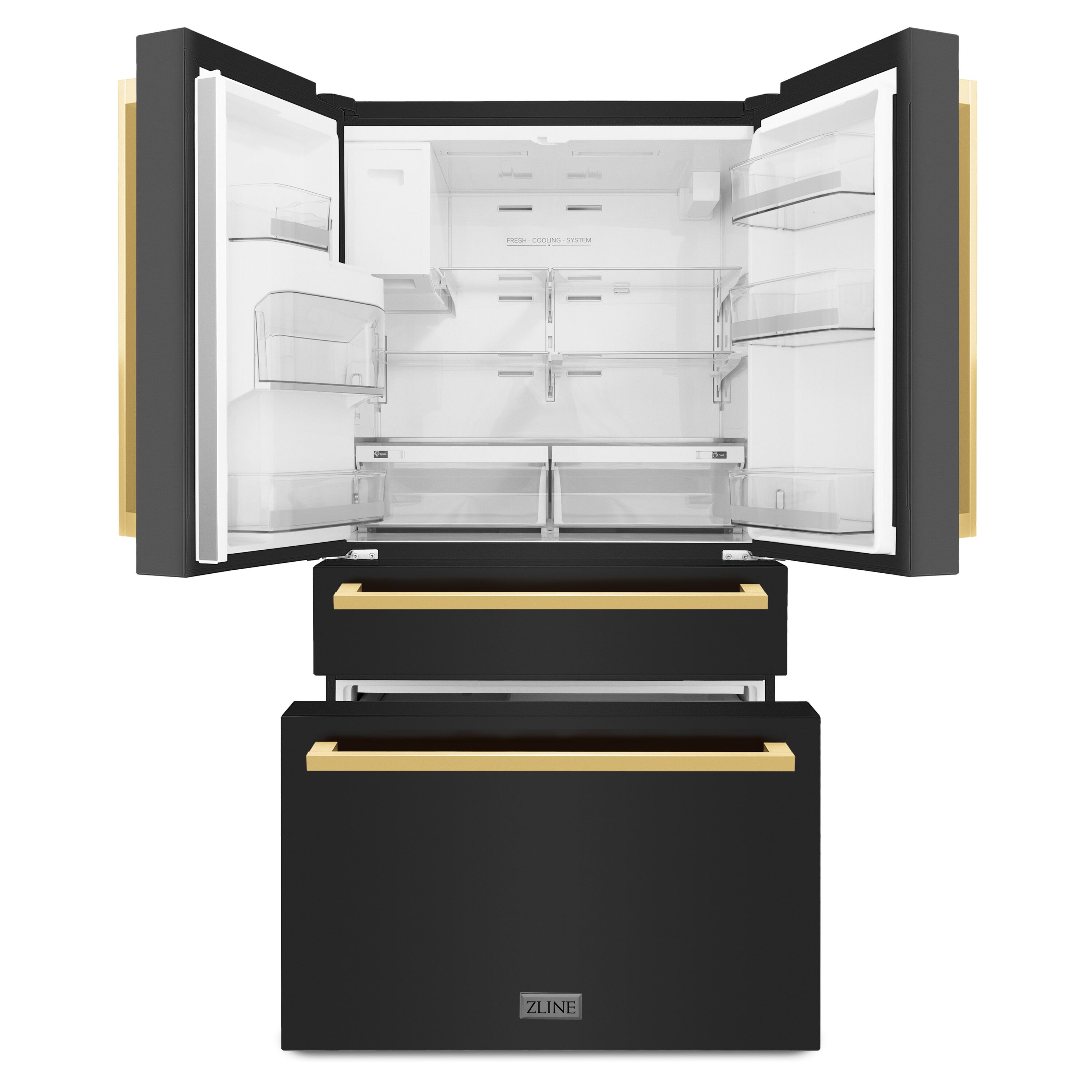 ZLINE KITCHEN & BATH Counter-Depth 21.6-cu ft 4 -Door French Door Refrigerator with Ice Maker with Water and Ice Dispenser ( Black Stainless Steel with Flat Polished Gold Handle ) ENERGY STAR Certified