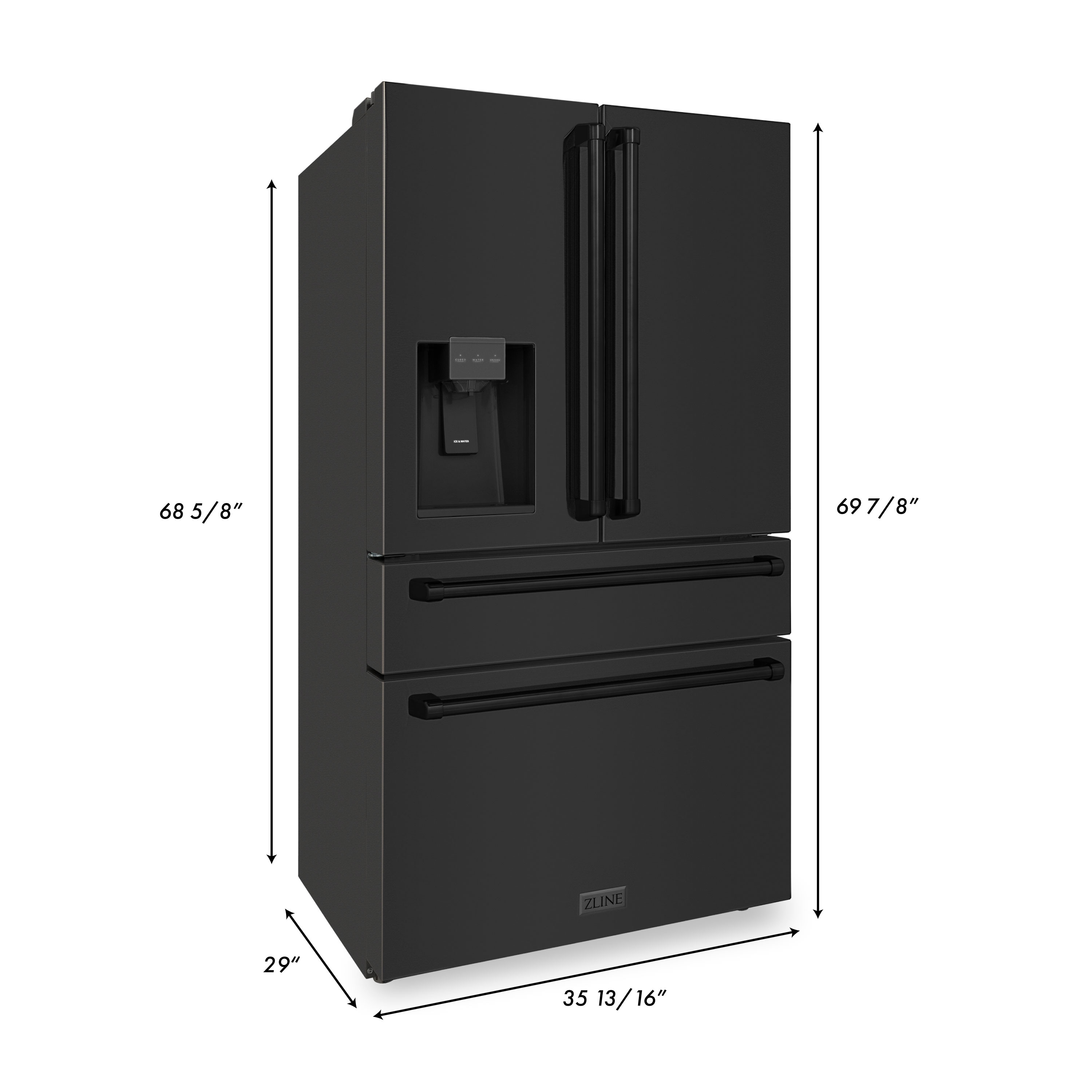 ZLINE KITCHEN & BATH Counter-Depth 21.6-cu ft 4 -Door French Door Refrigerator with Ice Maker with Water Dispenser ( Fingerprint Resistant Black Stainless Steel ) ENERGY STAR Certified