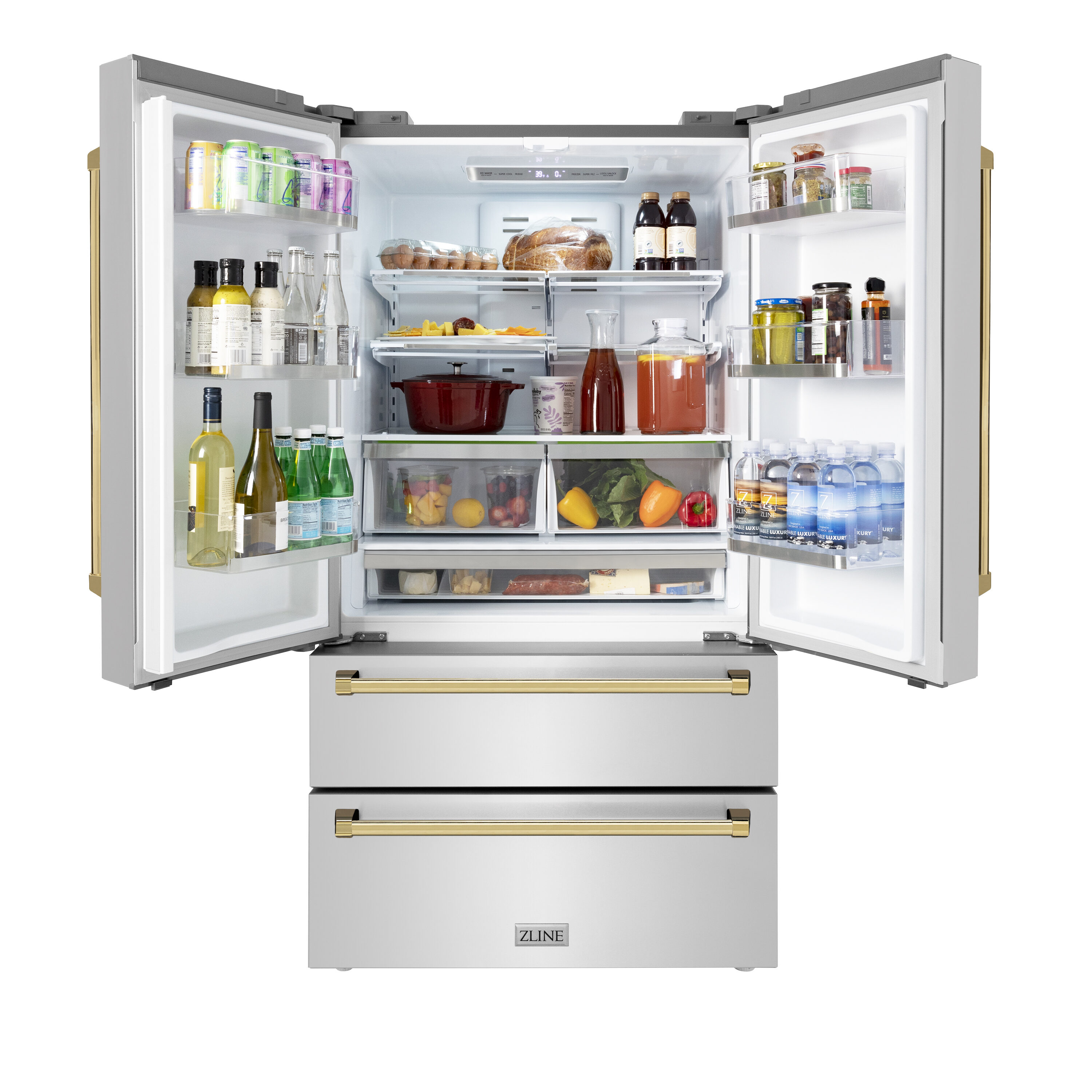 ZLINE KITCHEN & BATH Counter-Depth 22.5-cu ft 4 -Door French Door Refrigerator with Ice Maker with Ice Dispenser ( Stainless Steel w/ Polished Gold accent Handles ) ENERGY STAR Certified