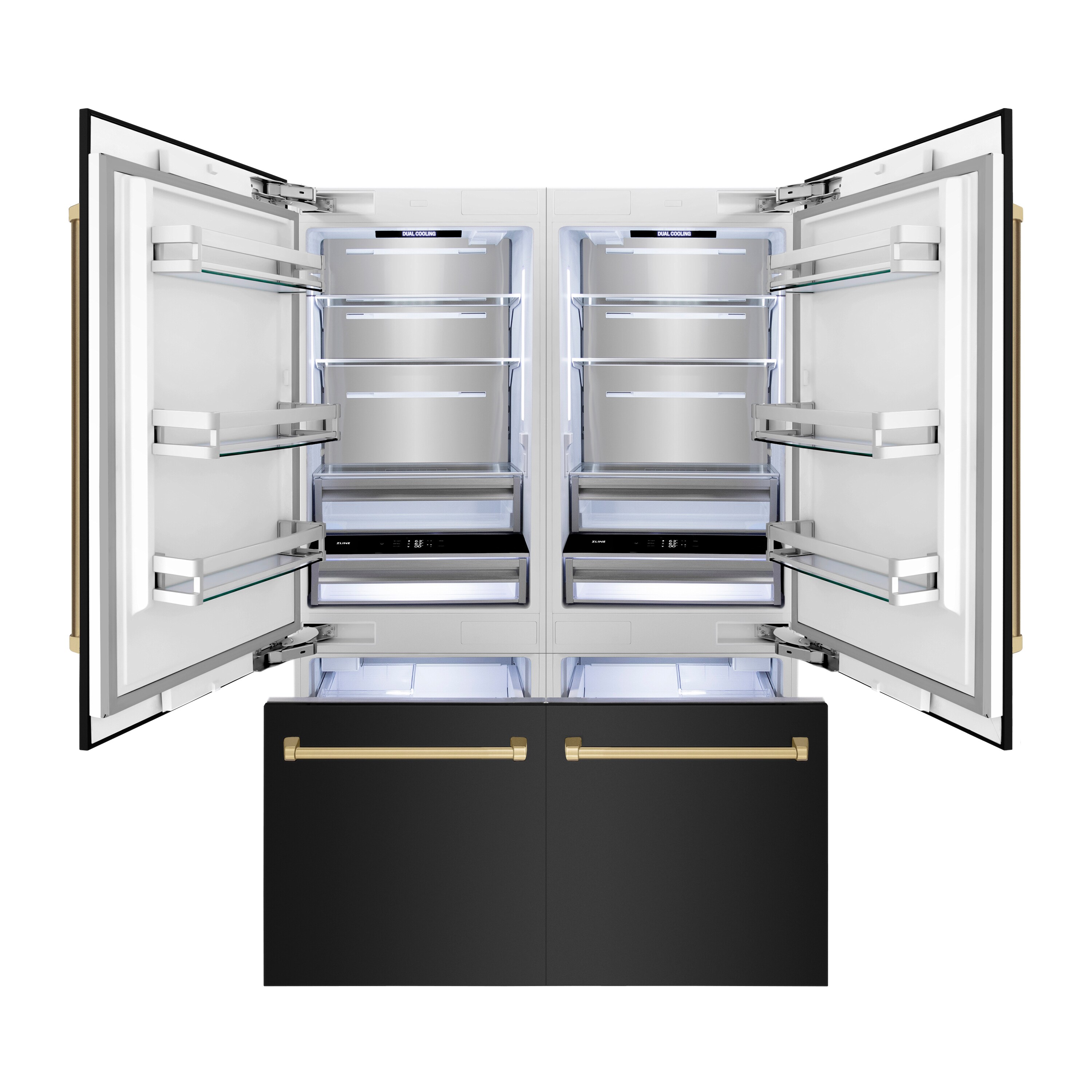 ZLINE KITCHEN & BATH Counter-Depth 32.2-cu ft 4 -Door Built-In French Door Refrigerator with Ice Maker with Water Dispenser ( Black Stainless Steel with Champagne Bronze accent Handles ) ENERGY STAR Certified
