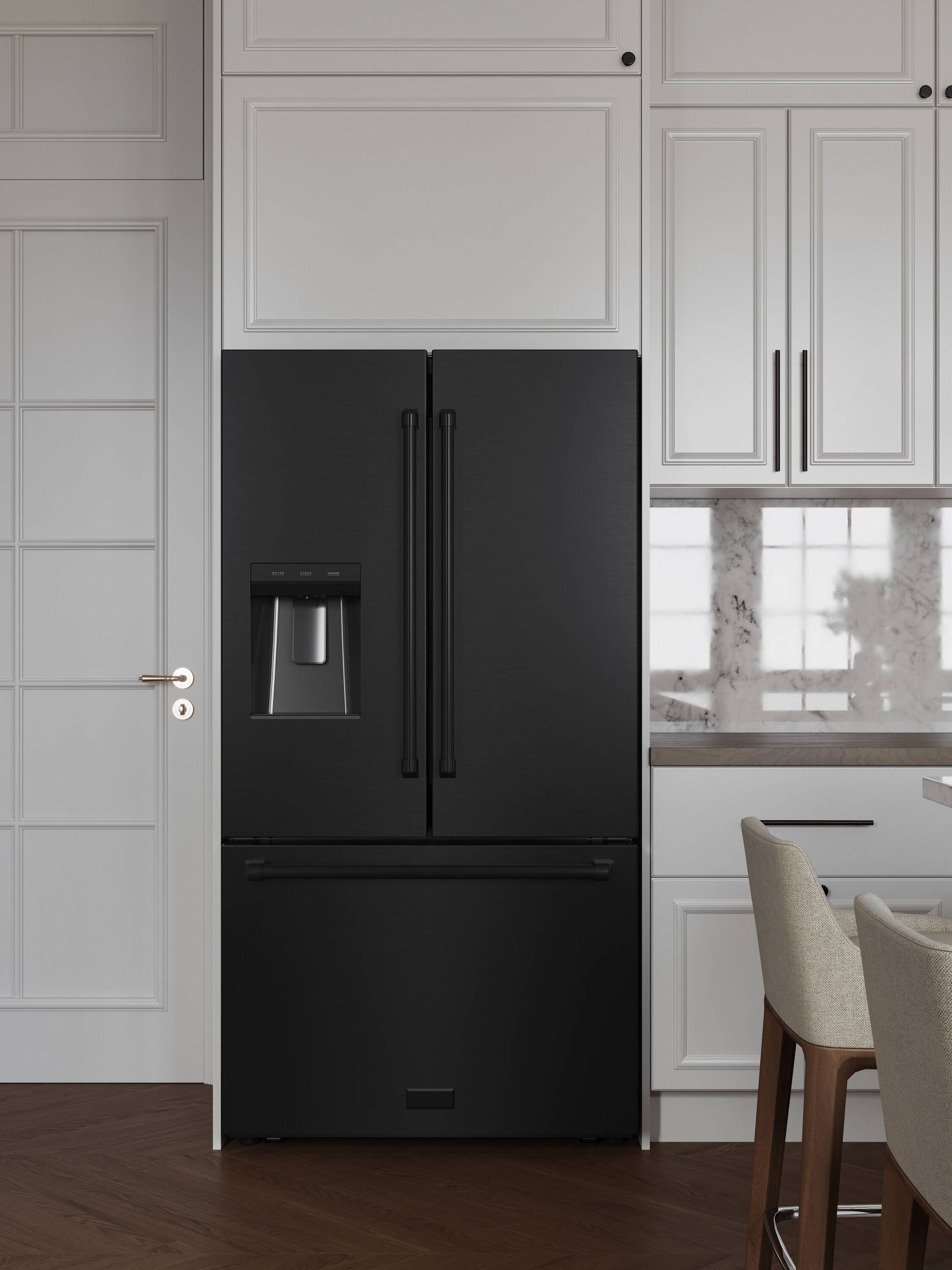 Luxury isn’t meant to be desired — it’s meant to be attainable. The ZLINE 36 in. 28.9 cu. ft. Standard-Depth French Door External Water Dispenser Refrigerator with Dual Ice Maker in Fingerprint-Resistant Black Stainless Steel (RSM-W-36-BS) features a state-of-the-art cooling system, a professional built-in water and ice dispenser, and an expansive interior designed to store more items than ever before. Elevate your kitchen to a modern, luxurious style while preserving more space for what matters.
